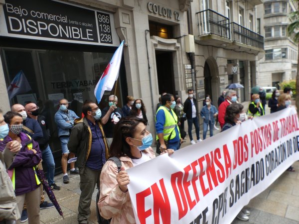 A representación dos preto de 60 empregados/as do Sagrado Corazón intentou hoxe sen éxito ser recibida polos administradores concursais para trasladarlles as súas demandas, entre elas coñecer as directrices organizativas e pedagóxicas ante o inminente reinicio do curso escolar tendo en conta o contexto sociosanitario derivado da Covid-19.