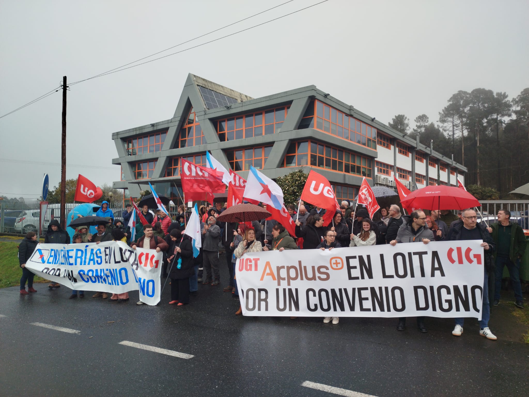 Neste contexto, acordouse convocar unha mobilización este mércores en Applus Norcontrol, xa que é unha das principais empresas do sector e das que maior número de traballadores e traballadoras ten. Nas oficinas de Sada, a empresa emprega a unhas 500 persoas, nas de Vigo a unhas 160 e en Ourense conta con 45.