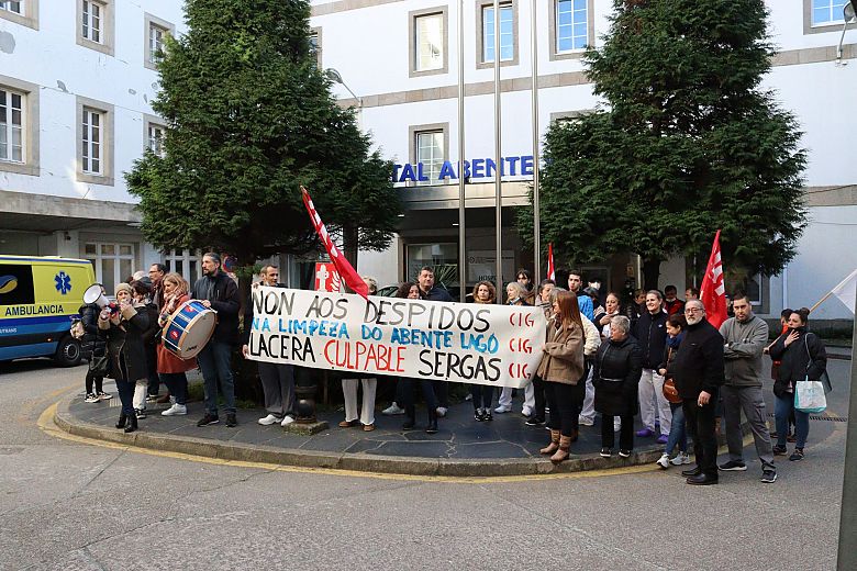 Traballadoras e traballadores do servizo de limpeza do Hospital Abente y Lago concentráronse na mañá deste venres diante do centro hospitalario para reclamar a readmisión das cinco compañeiras e compañeiros despedidos pola nova empresa adxudicataria, Lacera.
