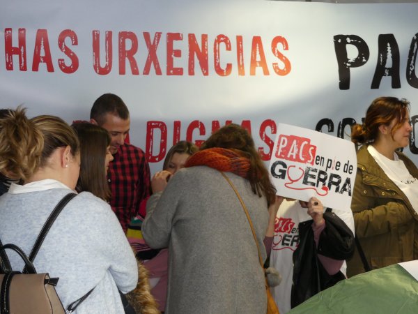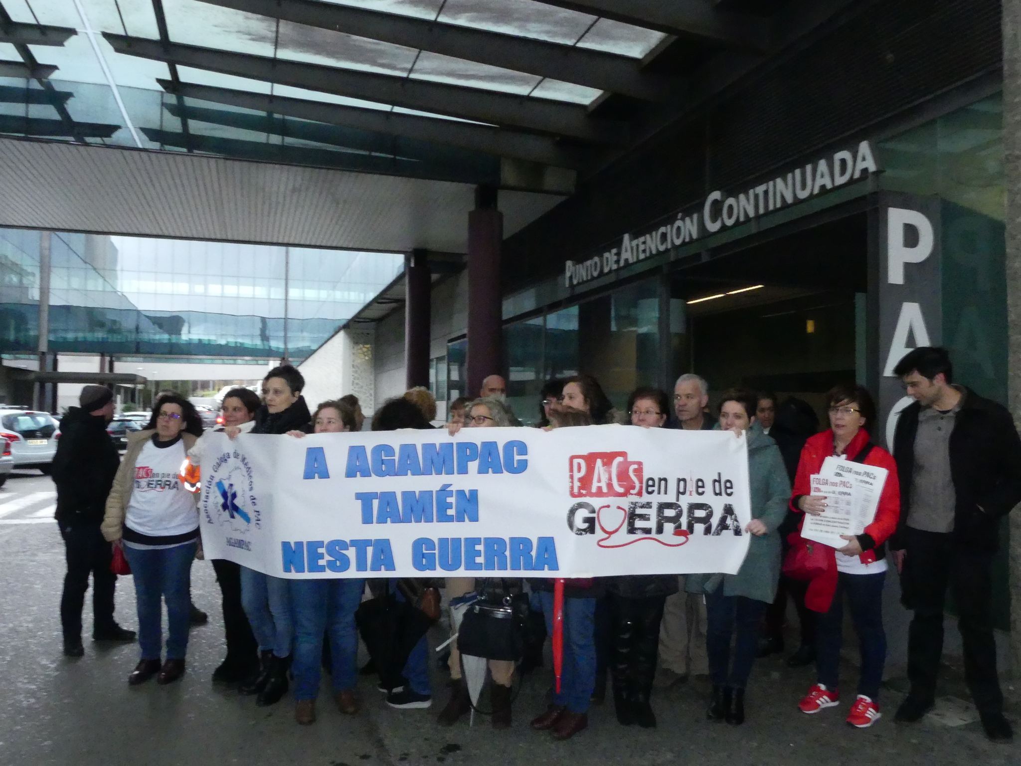 Traballadores/as dos PAC de Vigo, Ferrol e Compostela retomaron hoxe as mobilizacións coincidindo co inicio de novas xornadas de folga, que se desenvolverán até o vindeiro 17 de decembro para reclamar máis persoal e a mellora das condicións laborais e da atención ao usuario/a. Denuncian sobrecarga de traballo, falta de equipos de seguridade e discriminación, polo que insisten na equiparación coas condicións laborais do resto de persoal do Sergas.