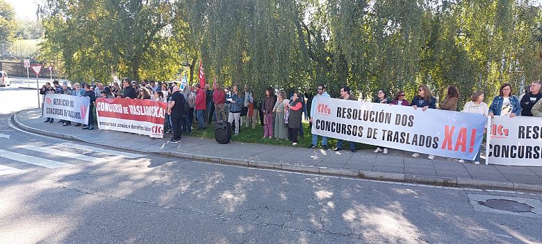 Traballadoras e traballadores da Xunta de Galiza concentráronse na mañá deste martes diante do edificio administrativo de San Caetano para exixir unha solución inmediata aos concursos de traslados, paralizados dende hai anos. Con esta protesta, convocada pola CIG-Autonómica, reclaman que se garanta unha prelación xusta de dereitos na provisión dos postos, a axilización da resolución dos procesos multiplicando os medios humanos e materiais e a duplicidade dos postos bloqueados de maneira cautelar por resolución xudicial.