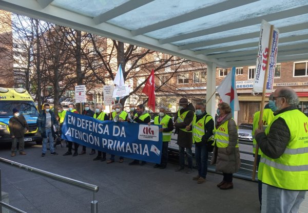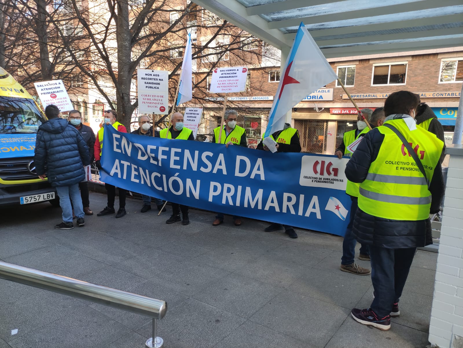 O colectivo de persoas xubiladas e pensionistas da CIG de Vigo mobilizouse hoxe de novo en defensa da atención primaria, nesta ocasión cunha concentración ás portas do centro de saúde da Dobrada para reclamar os recursos materiais e humanos necesarios para contar cun servizo de calidade que cubra as necesidades sanitarias da poboación. En concreto, demandan máis contratacións de persoal en condicións de traballo dignas e que se acometan as reformas estruturais precisas para garantir unha atención axeitada ao conxunto da cidadanía.