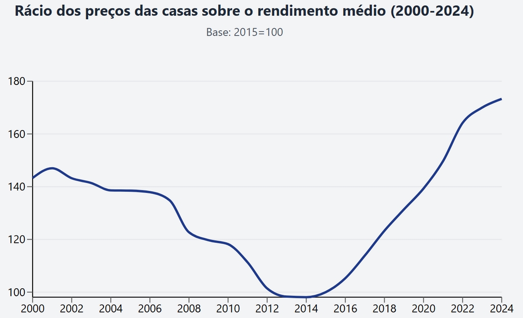 As dinâmicas descritas por Baccaro são evidentes no caso português. Entre 2014 e 2024, o preço das casas em Portugal subiu mais de 135%, enquanto o salário médio dos residentes cresceu apenas 36%. Portugal foi o país em que o fosso entre os salários e os preços da habitação mais se alargou na última década, o que explica porque é que a habitação passou a representar uma fatia cada vez mais importante das despesas das pessoas e porque é que cidades como Lisboa passaram a surgir no topo dos rankings que medem a dificuldade de acesso à habitação.