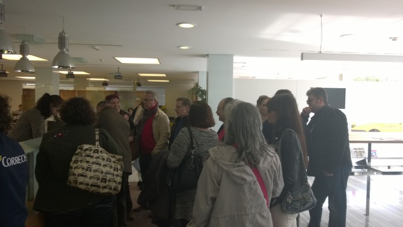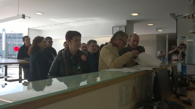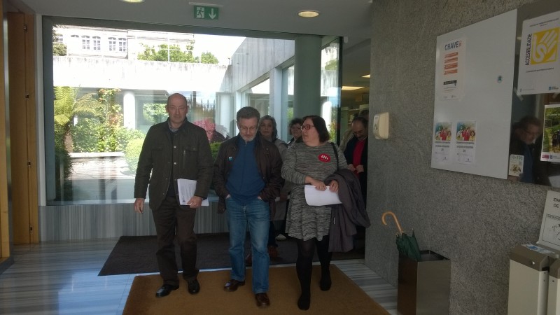 Coincidindo co acto de presentación do informe as e os membros do comité de empresa e os representantes sindicais concentráronse ás portas do rexistro, no edificio administrativo da Xunta, en San Caetano, para denunciar a situación de deterioro e abandono destes centros. Unha situación que, segundo explicaron, ten chegado a un punto “alarmante”, a consecuencia dos recortes e da non cobertura de postos de traballo que “ameazan a calidade das prestacións e o mantemento dos servizos básicos a prestar aos usuarios”.