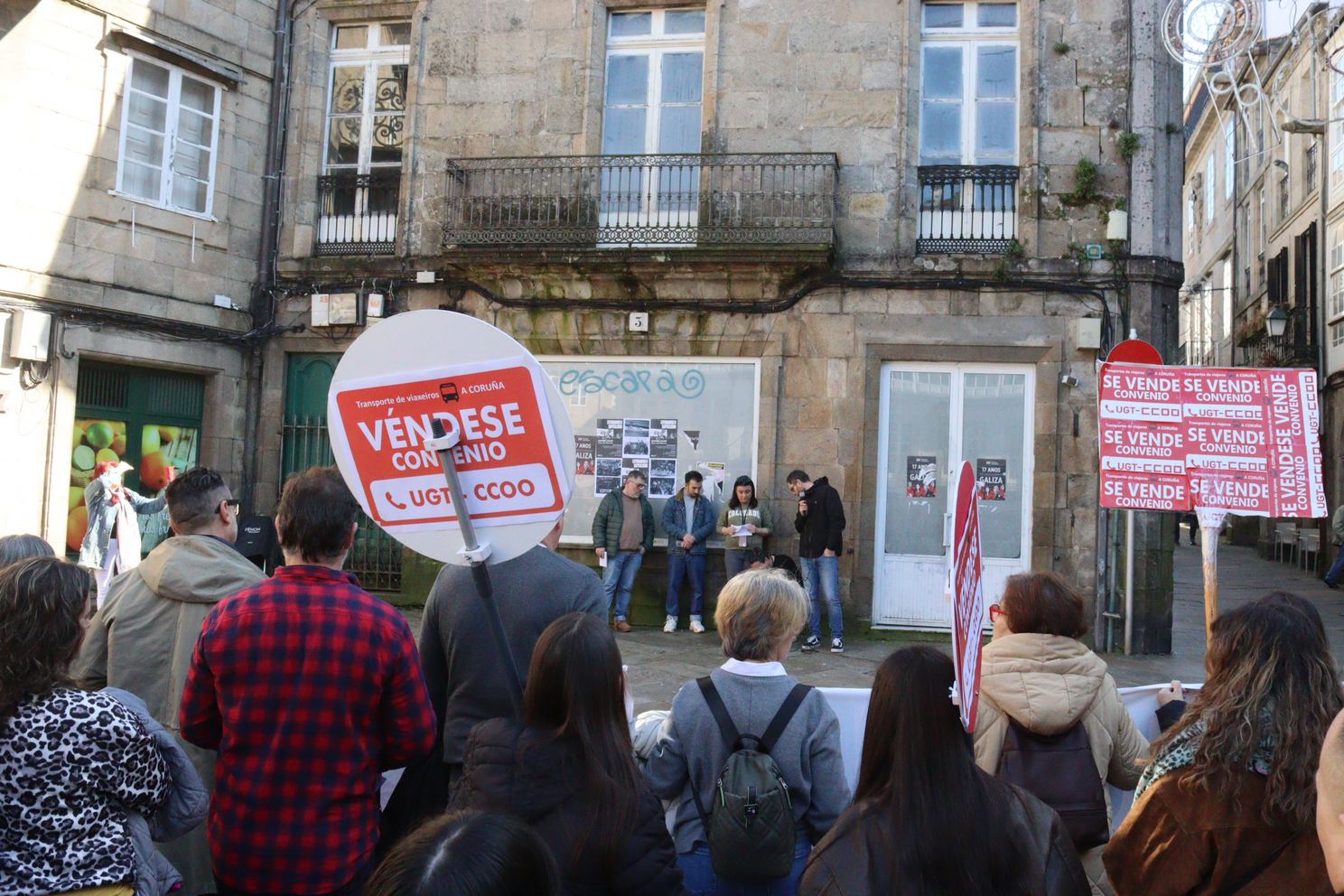 Neste senso, Hugo Antunes, delegado nos autobuses urbanos de Compostela, incidiu en que “hoxe estamos aquí por dignidade” e para que se escoite a vontade manifestada polas persoas traballadoras que non queren o acordo que hai enriba da mesa. “Porque engade obrigas, elimina dietas, aumenta responsabilidades e iso non é avanzar é facer que retrocedamos mentres nos din que é un progreso”, aseverou.