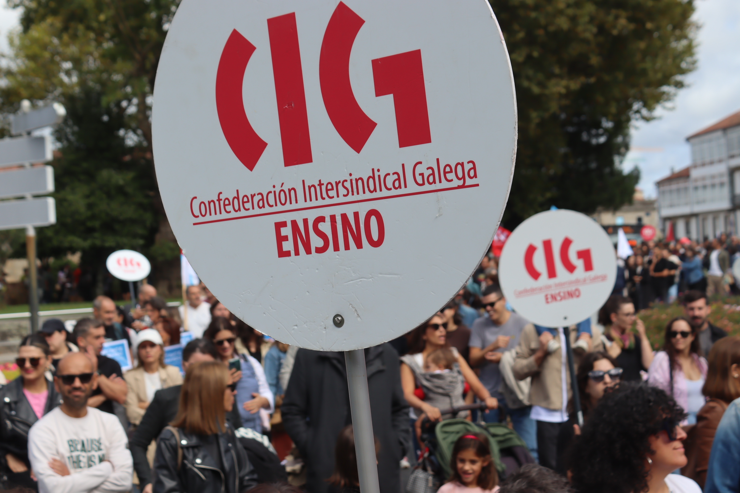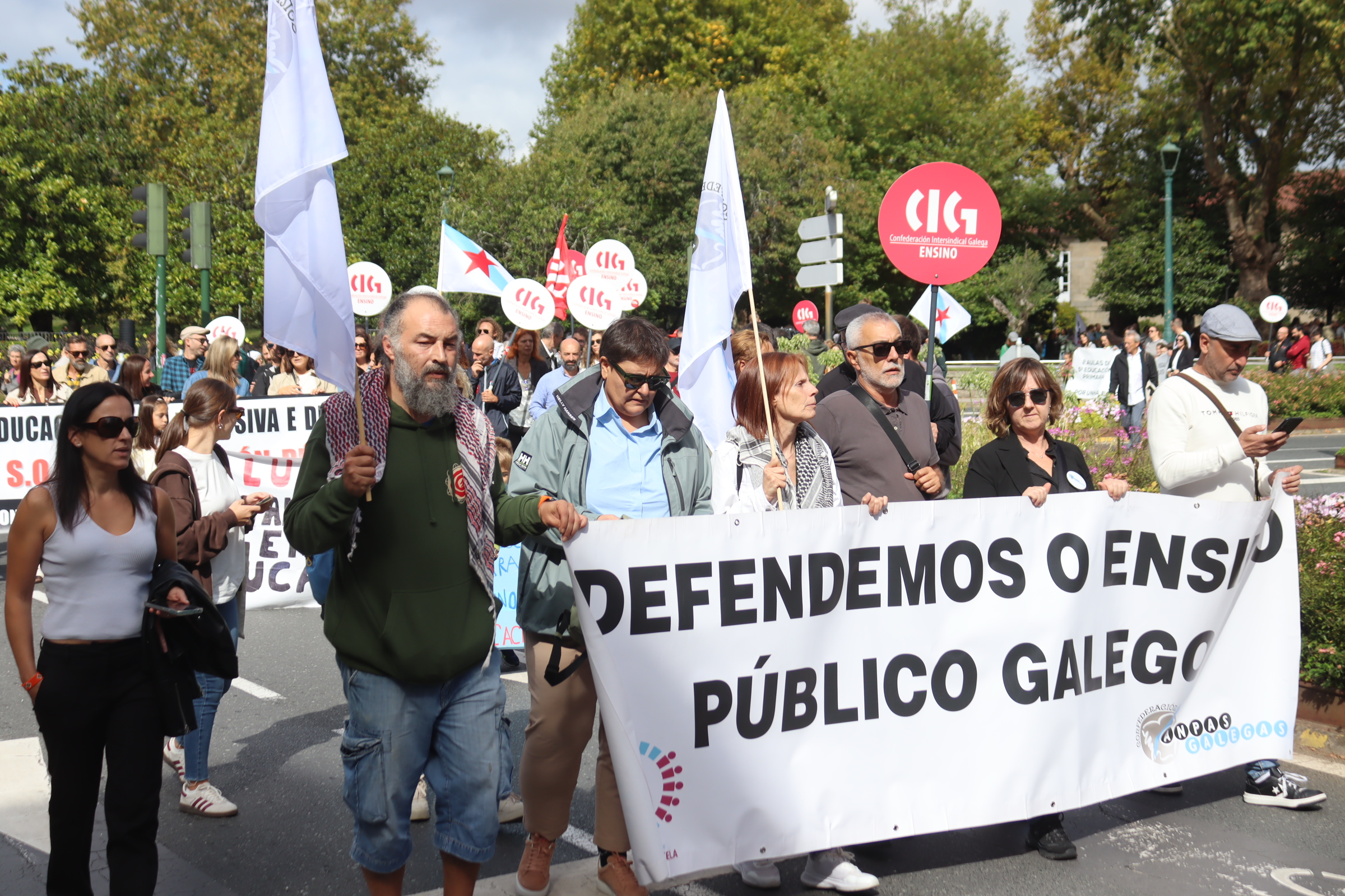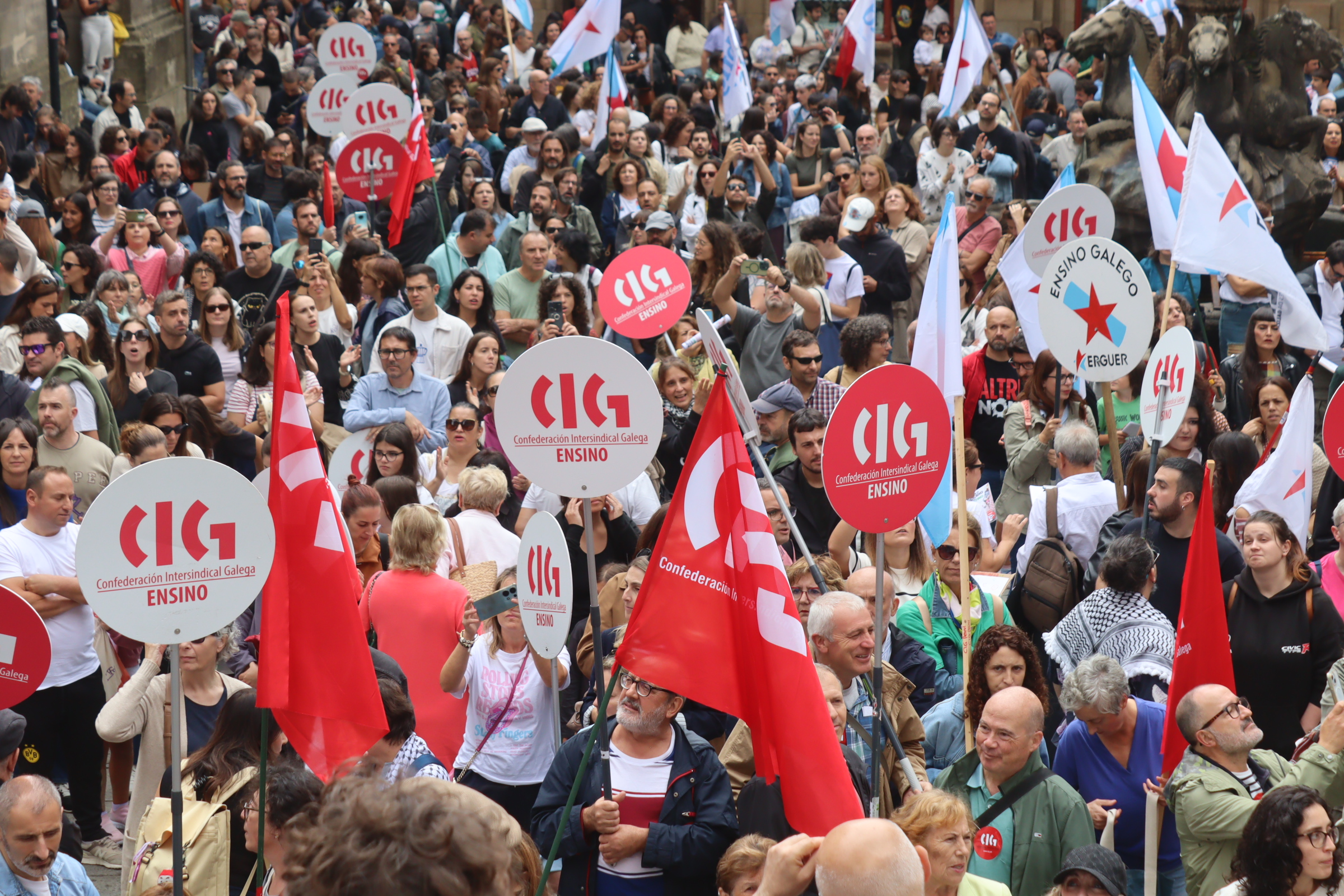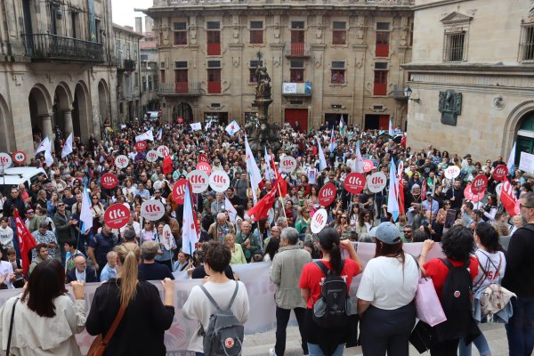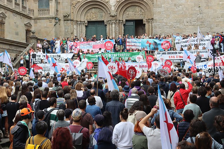 A comunidade educativa -profesorado, ANPAS e organizacións estudantís- deuse cita esta mañá en Compostela para exixirlle á Xunta que aposte polo ensino público, que o fortaleza, que o coide e, como dixo ao remate da mobilización a secretaria nacional de CIG-Ensino, “que se deixe de propaganda e de falsificar números”.