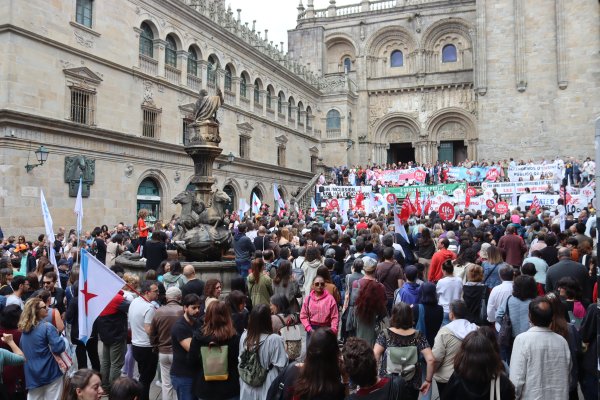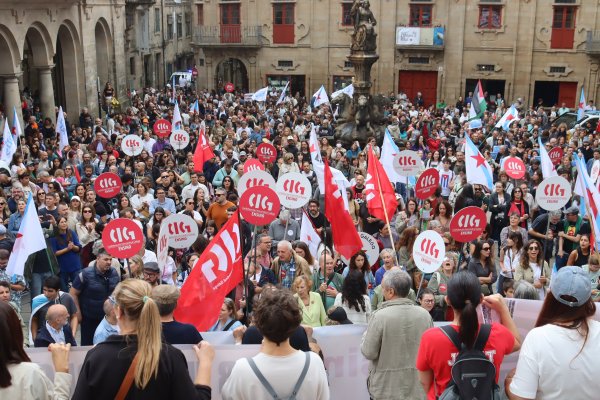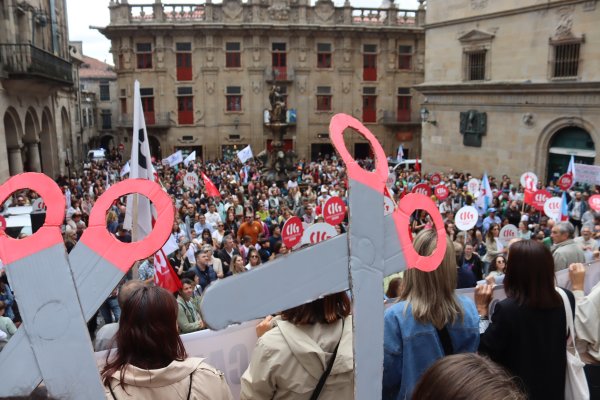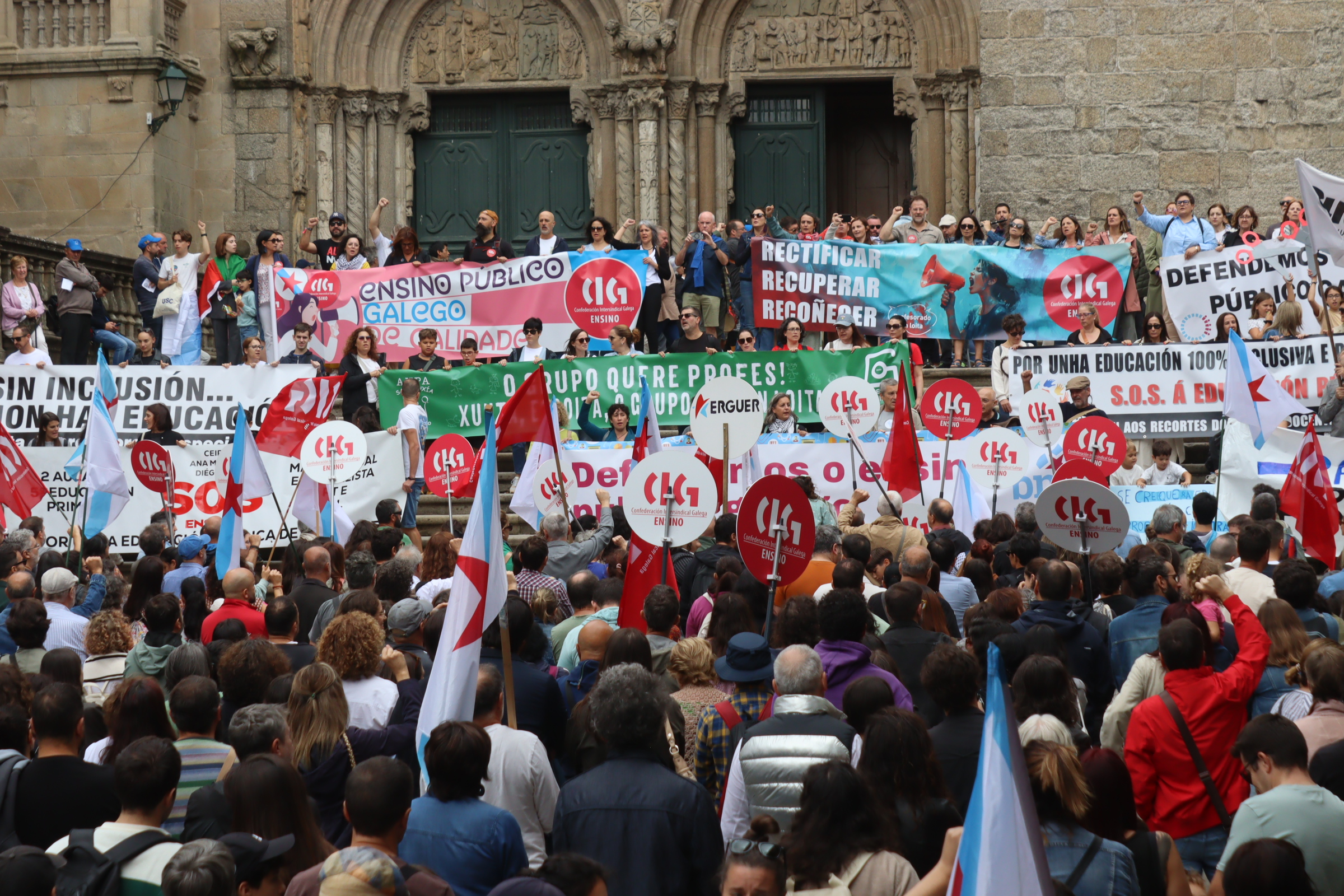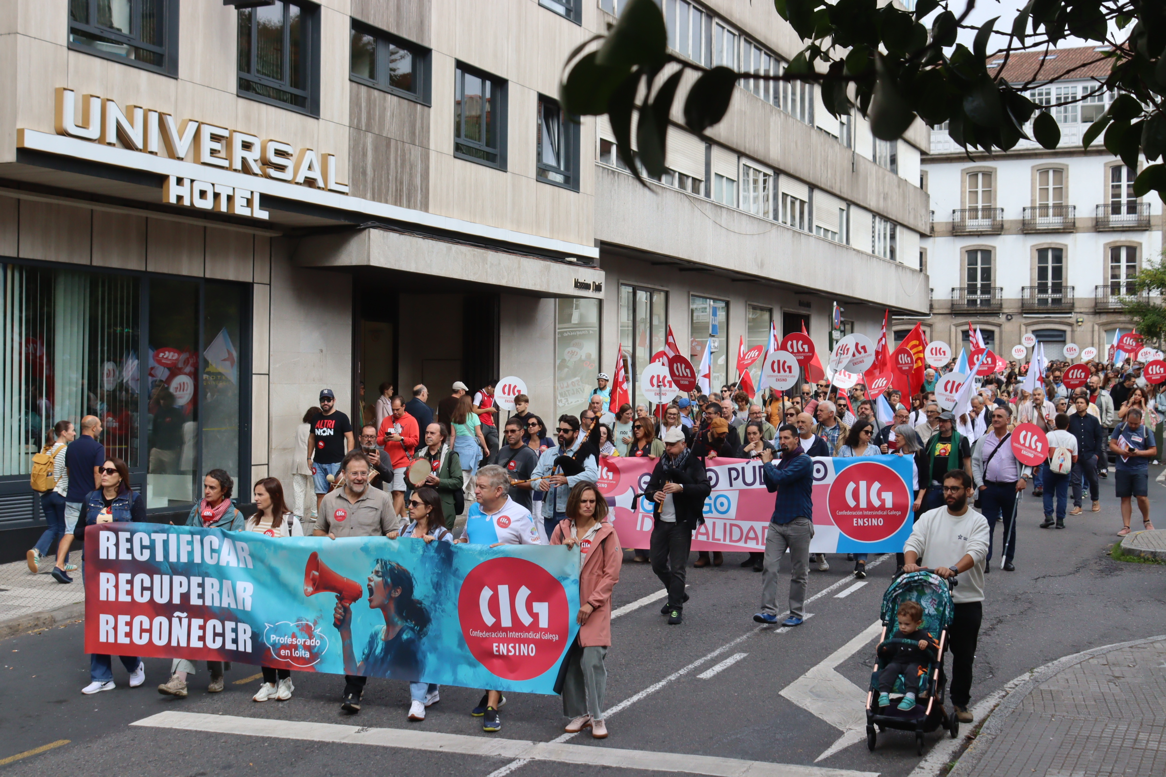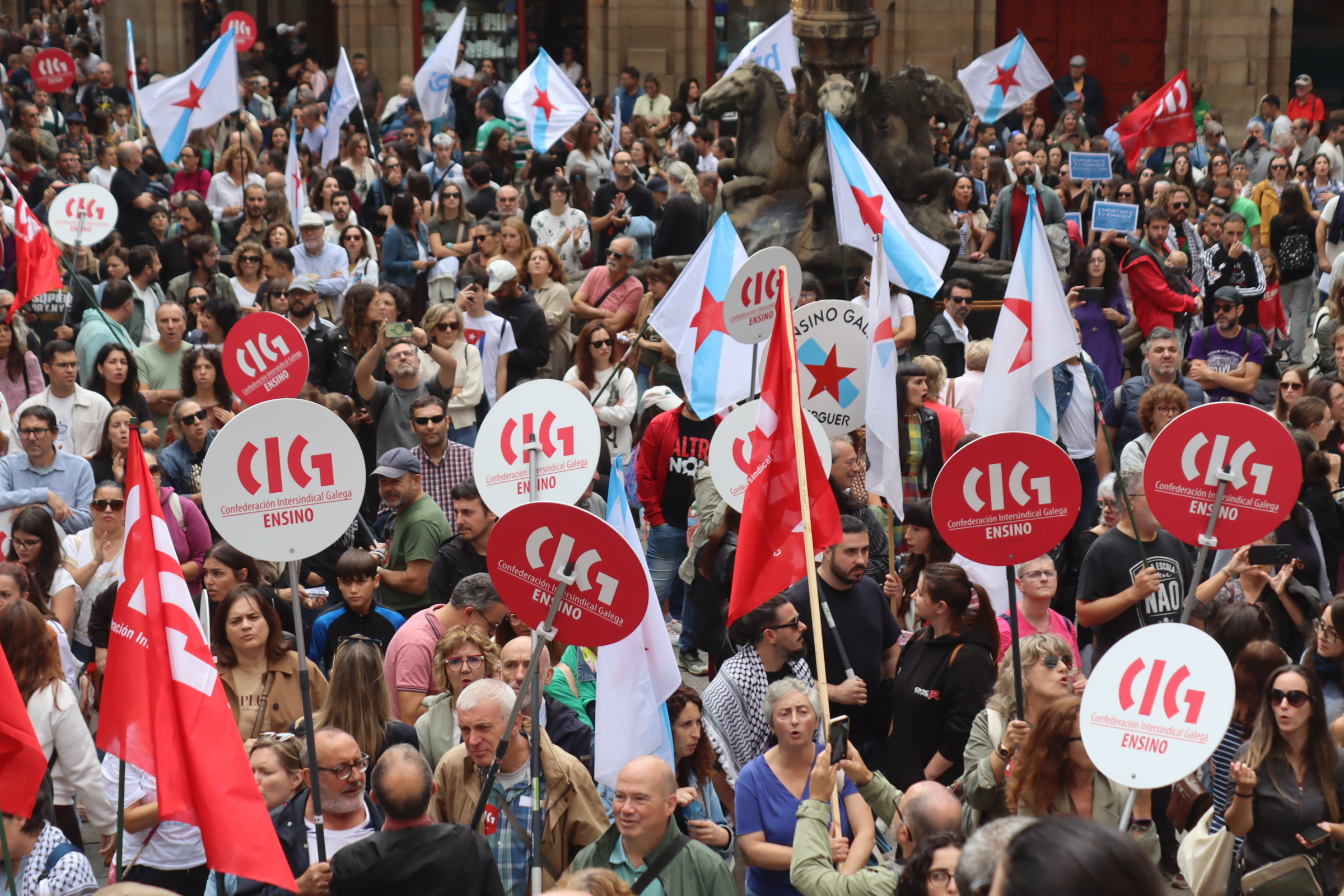 A comunidade educativa -profesorado, ANPAS e organizacións estudantís- deuse cita esta mañá en Compostela para exixirlle á Xunta que aposte polo ensino público, que o fortaleza, que o coide e, como dixo ao remate da mobilización a secretaria nacional de CIG-Ensino, “que se deixe de propaganda e de falsificar números”.