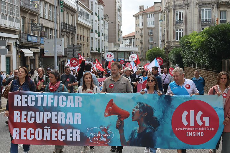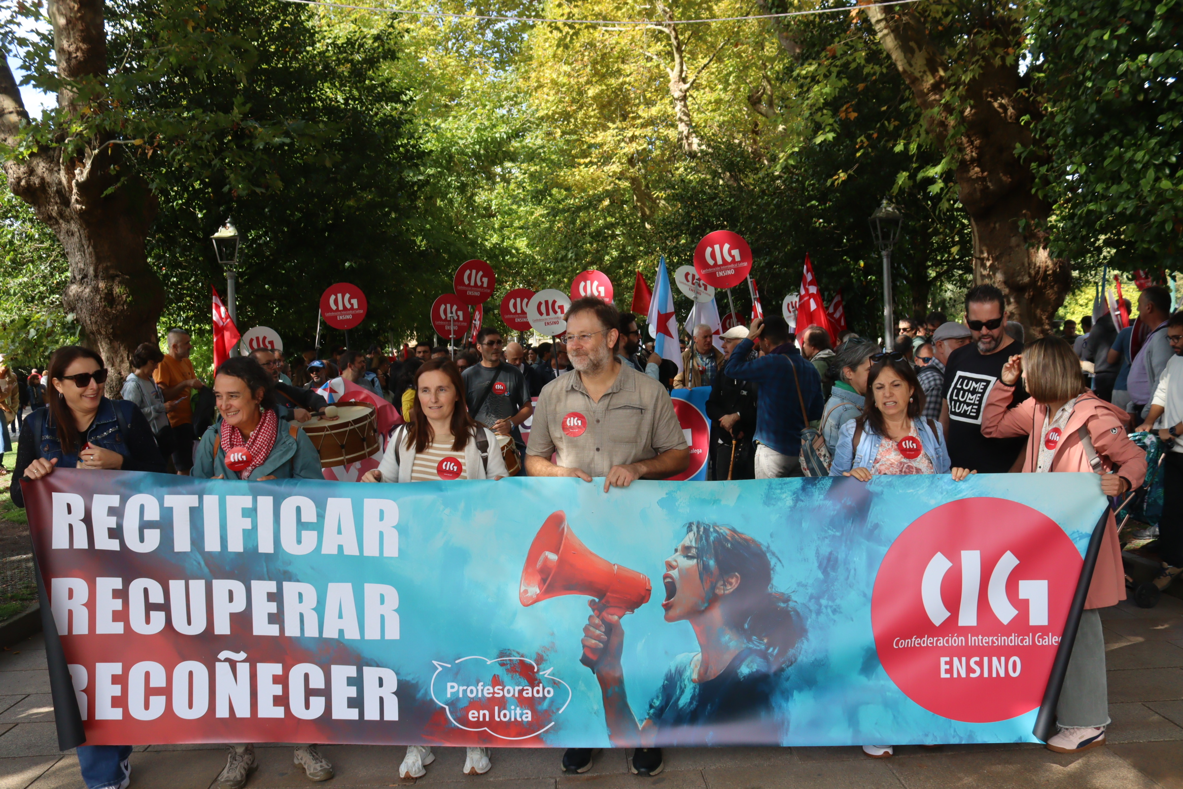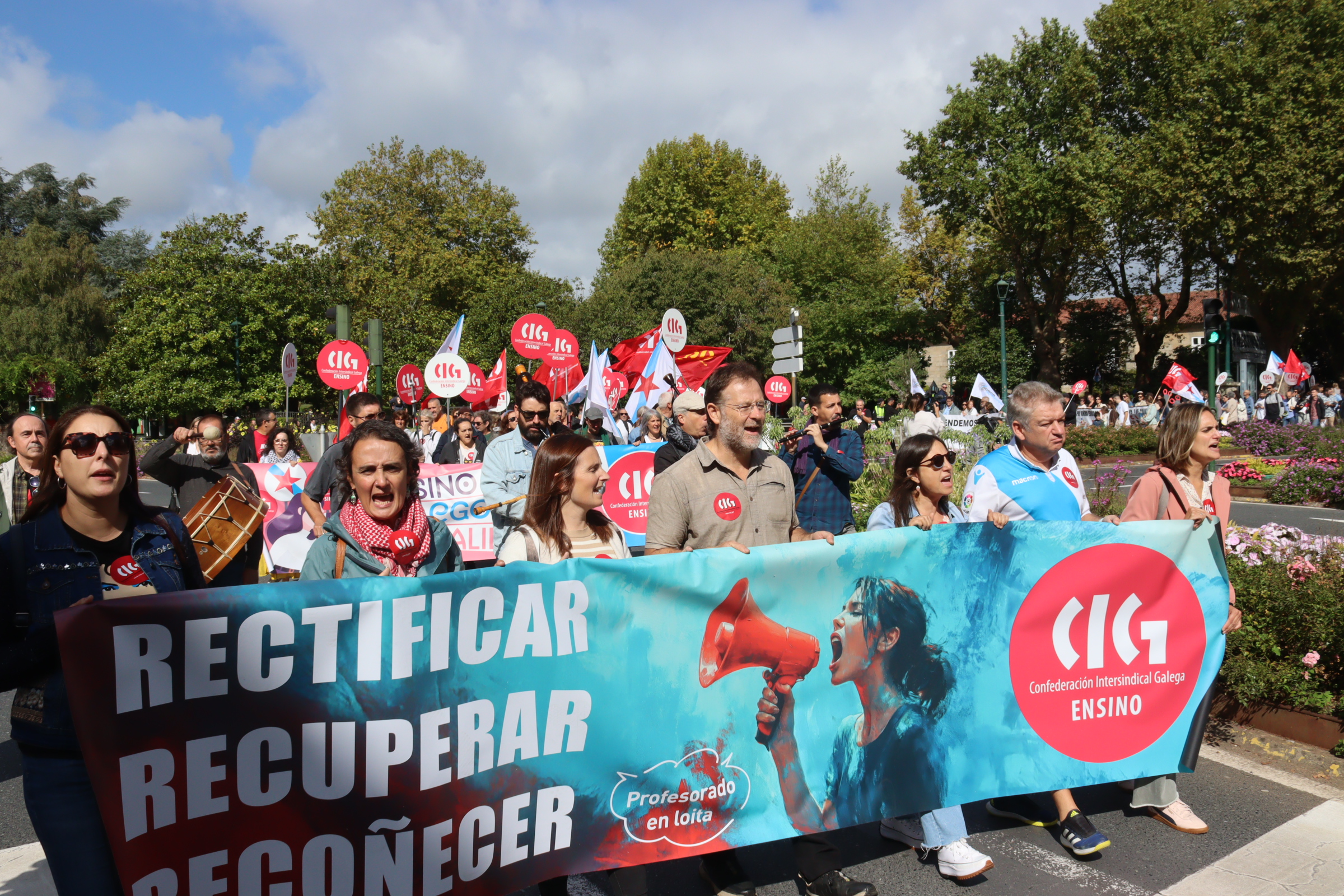 Reclamoulle ademais ao presidente da Xunta que recupere o horario lectivo do profesorado (18 horas para secundaria e 21 primaria), porque “precisamos ter máis horas para coordinar proxectos, para atender as titorías, para reunións, para as actividades complementarias”, dixo. E recollendo o sentir maioritario do profesorado asegurou que “estamos fartos e fartas de non chegar, de que non poidamos atender como se merece o alumnado e de que este quede sen os apoios ou desdobres que necesita”.