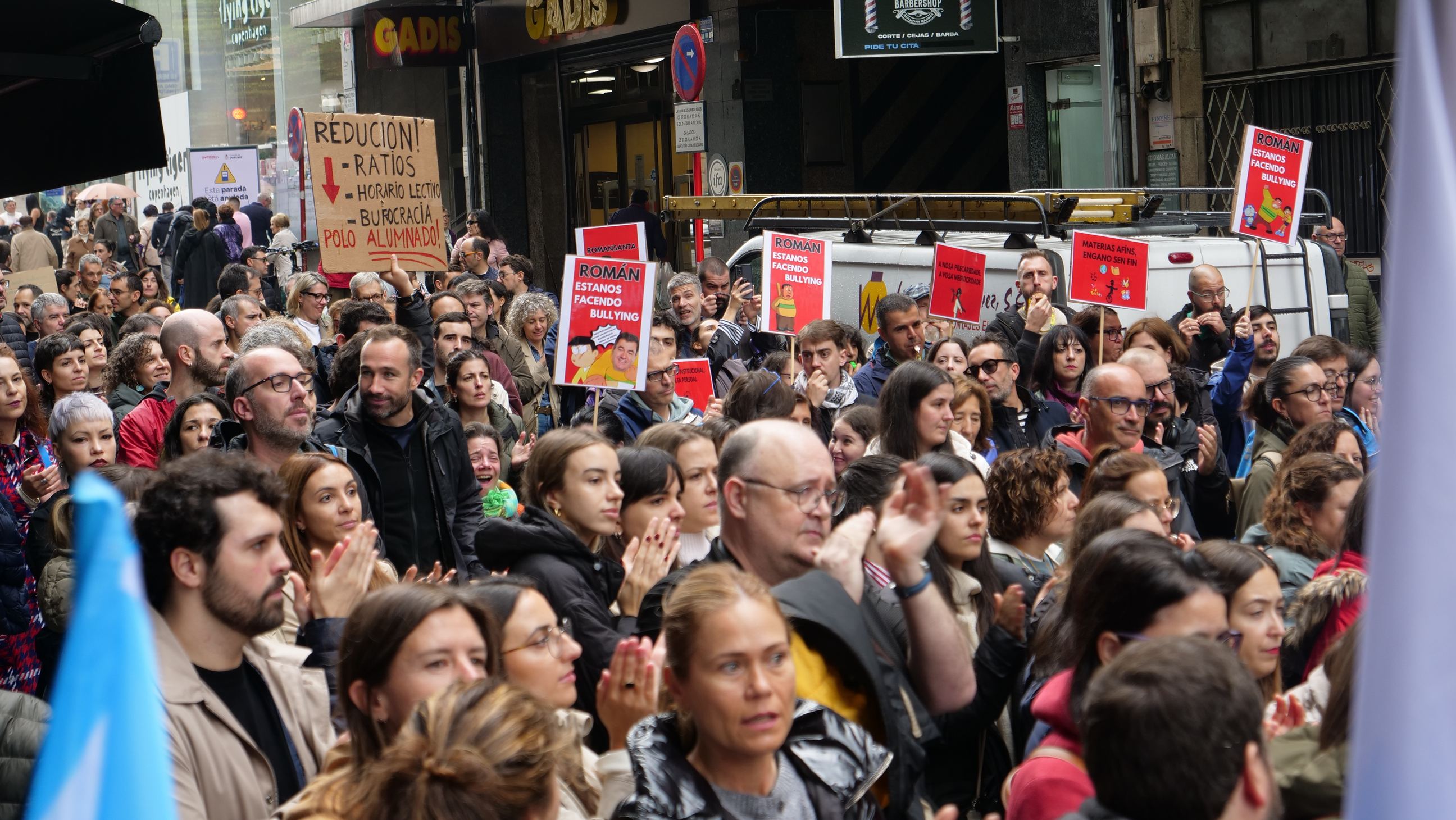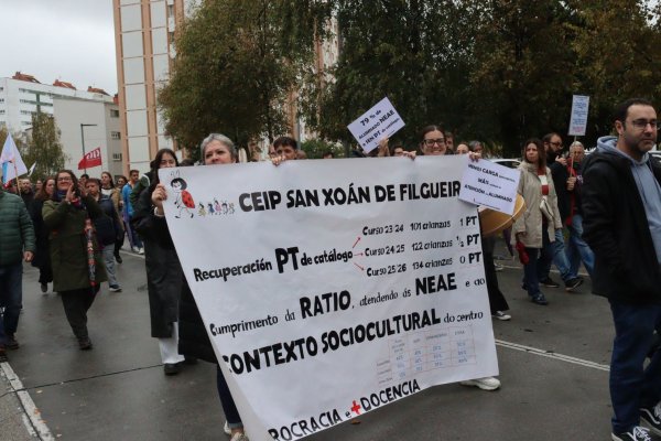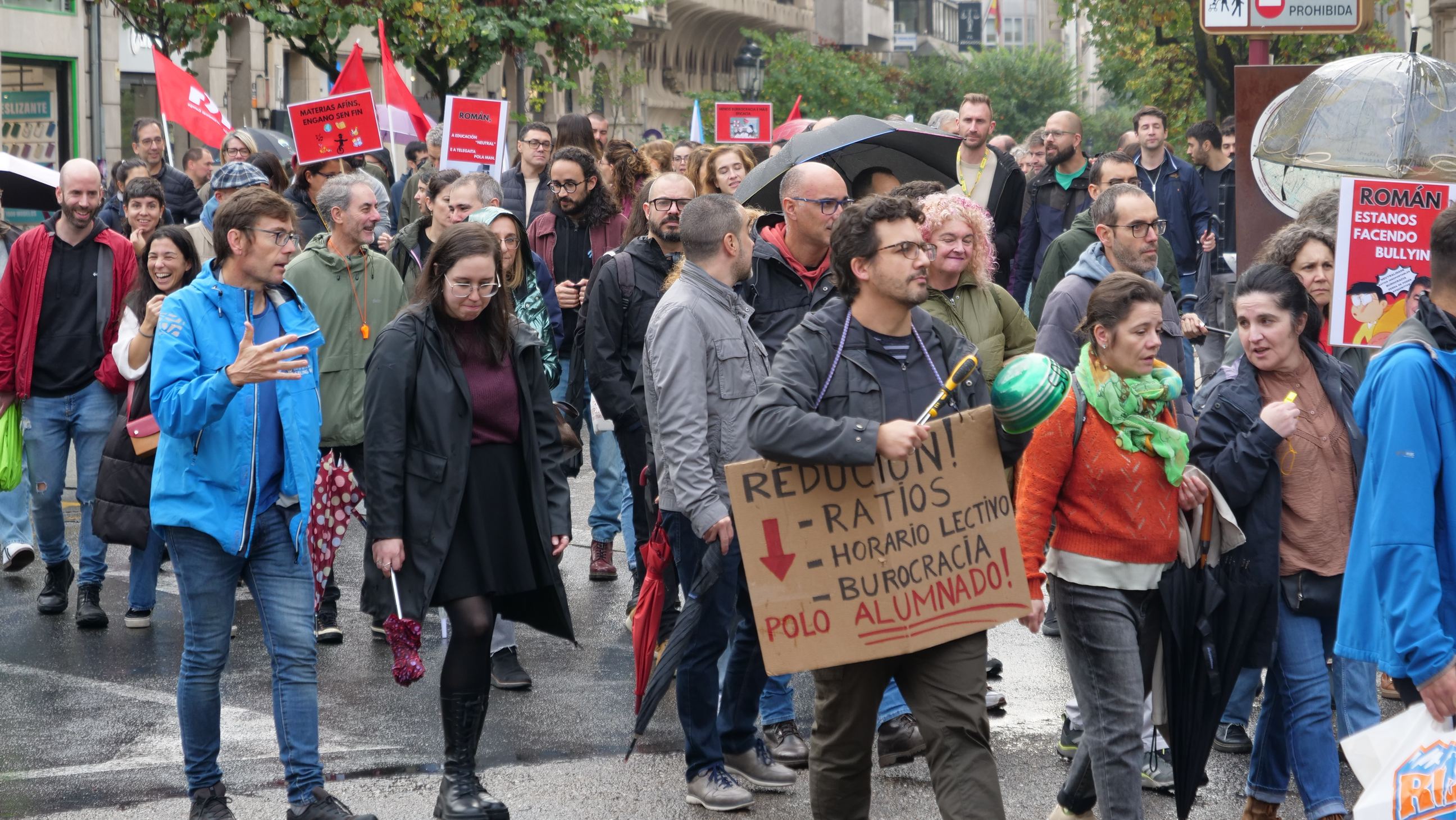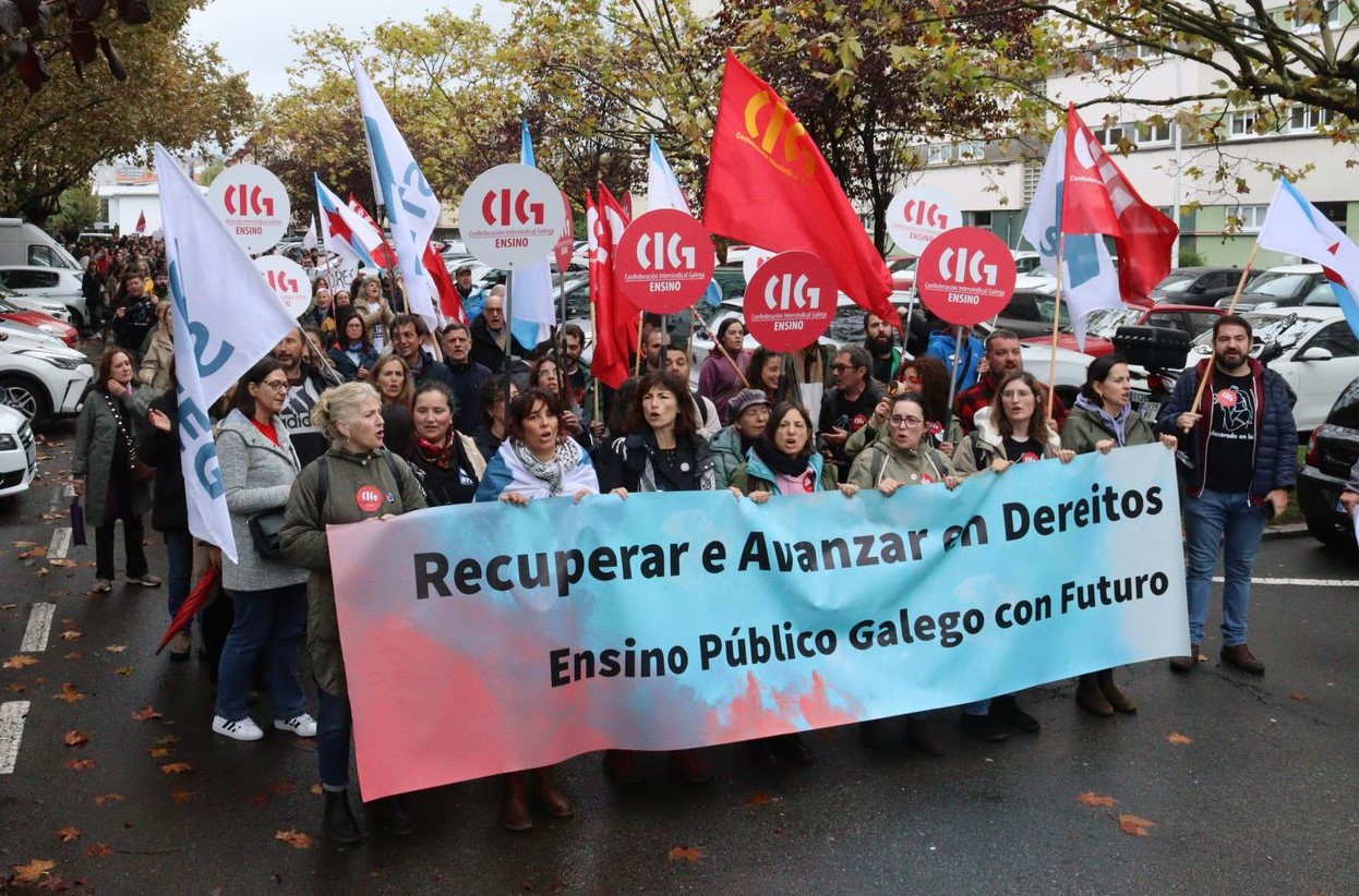 Ademais, enumerou as principais reivindicacións que levaron a convocar esta folga, como as ratios por aula. “É ofensivo o que a Consellaría propón, un calendario até o curso 32/33 para completar a redución a 20 en primaria e non comezar a negociación para a baixada en secundaria até o curso 27/28. Tómannos por parvos e parvas. Non hai outra definición”. Apuntou que coa crise de natalidade do noso país e moitos centros no rural abocados ao peche, a Consellaría hipoteca totalmente o futuro do ensino obrigatorio en Galiza.