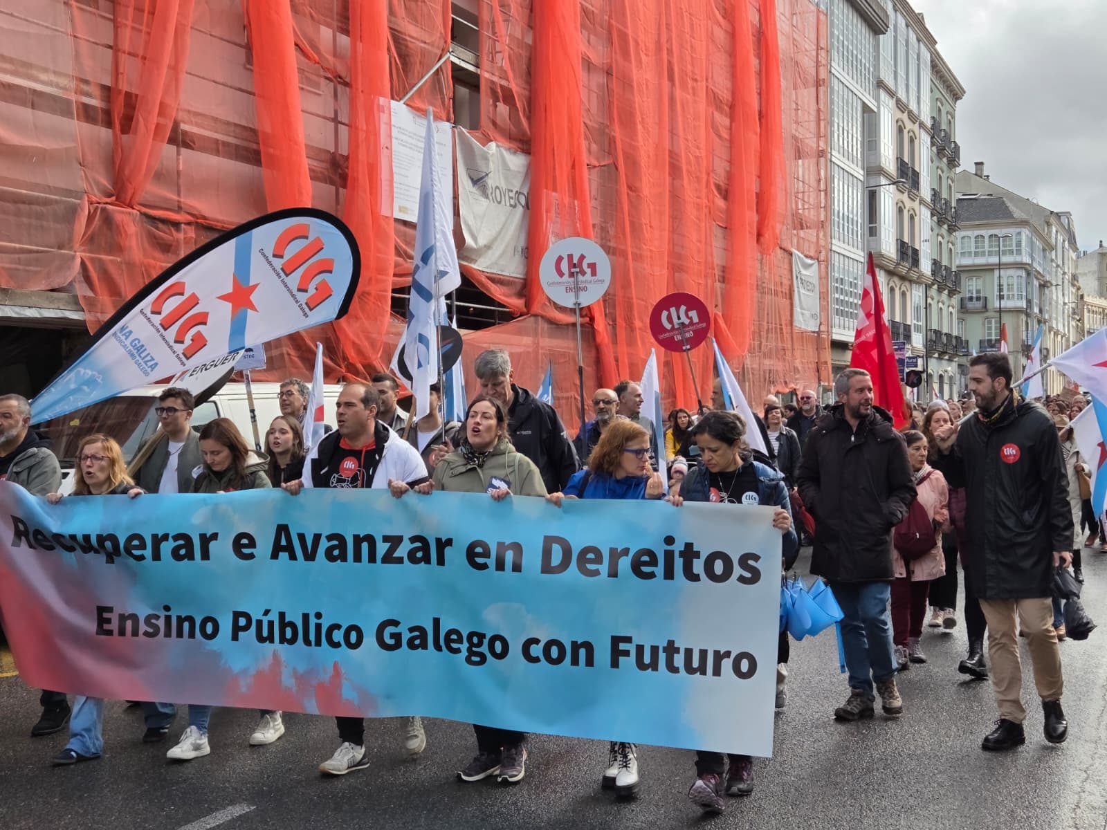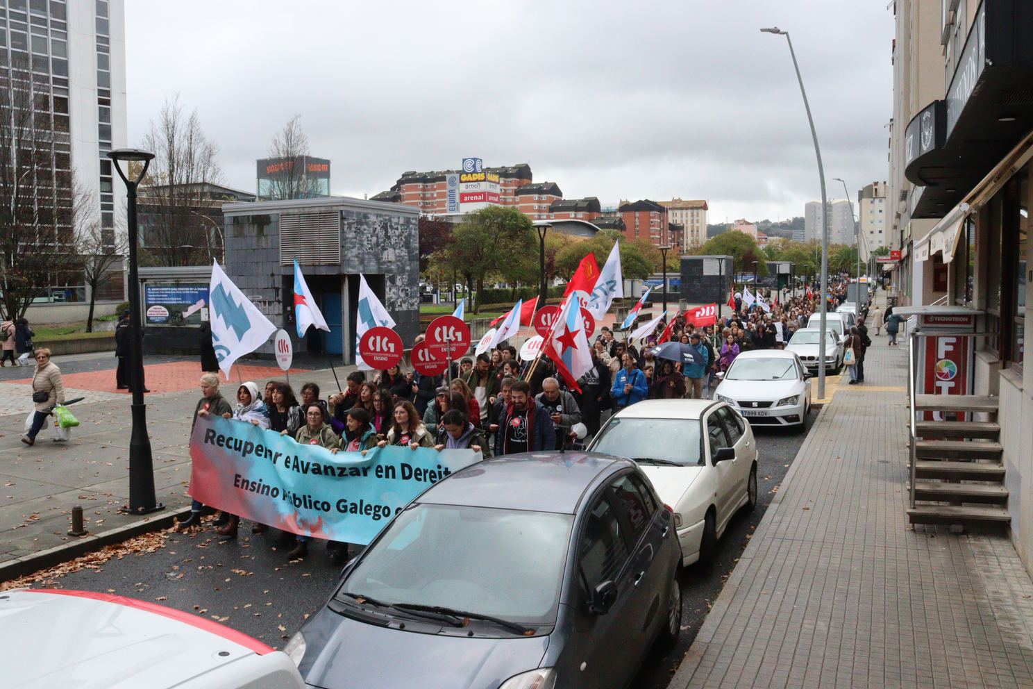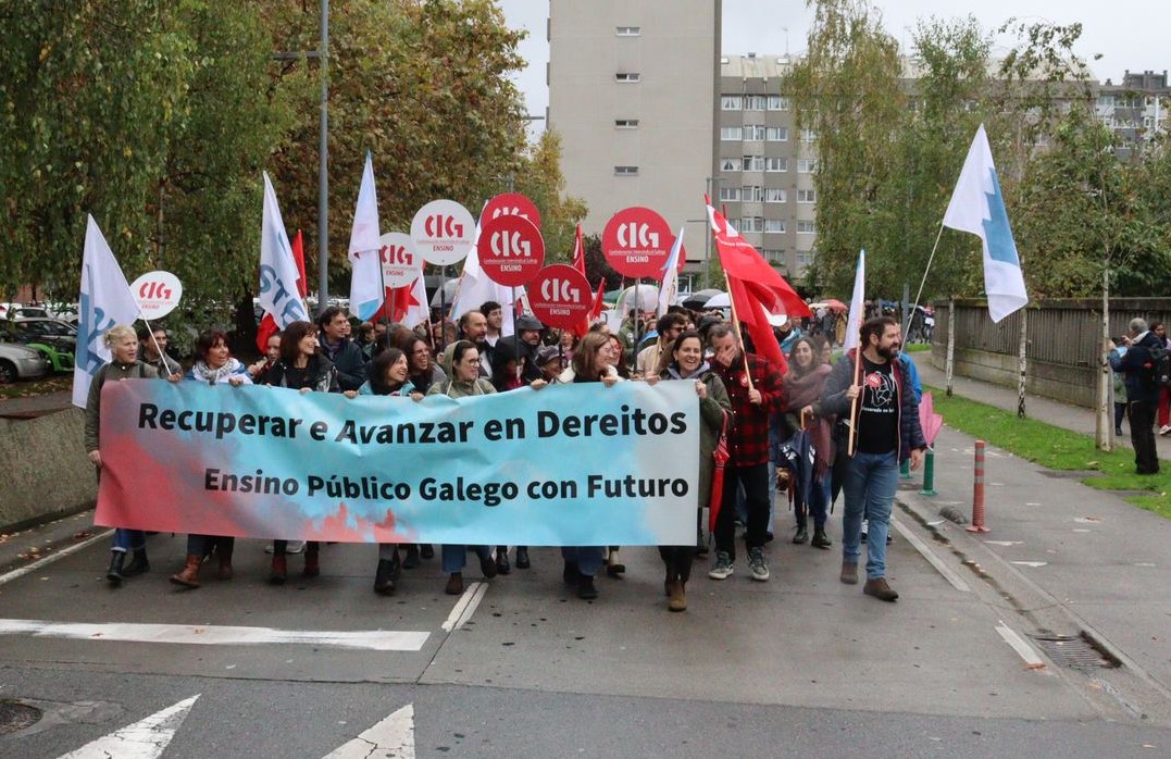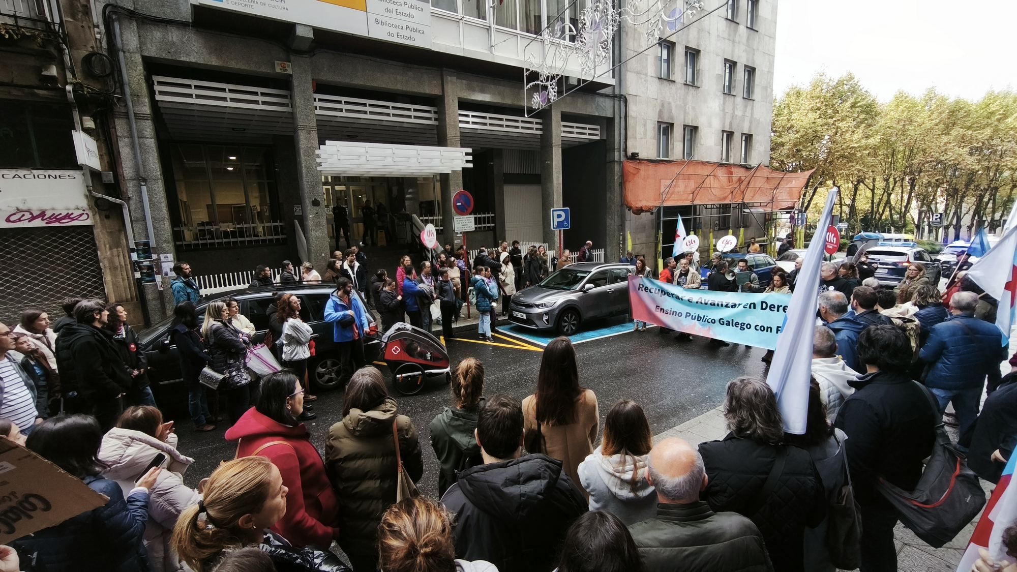 Na Coruña, as persoas manifestantes saíron ás 11:30 horas do Colexio Alborada, onde esta noite se pecharon un grupo de 40 docentes, e marcharon até o edificio administrativo da Xunta en Monelos. A encargada de ler o manifesto final por parte da CIG-Ensino, Xela Armas, recalcou que “o profesorado galego está facendo historia con esta loita iniciada a comezos de curso despois de 15 anos de recortes nos que todas as enerxías e a responsabilidade profesional se volcaron en atender o alumnado".
