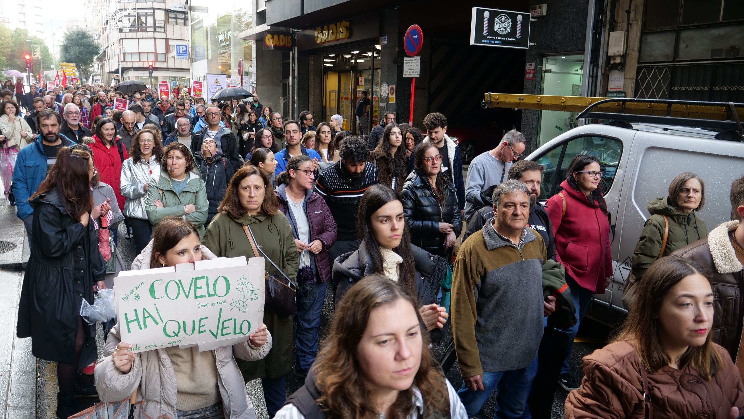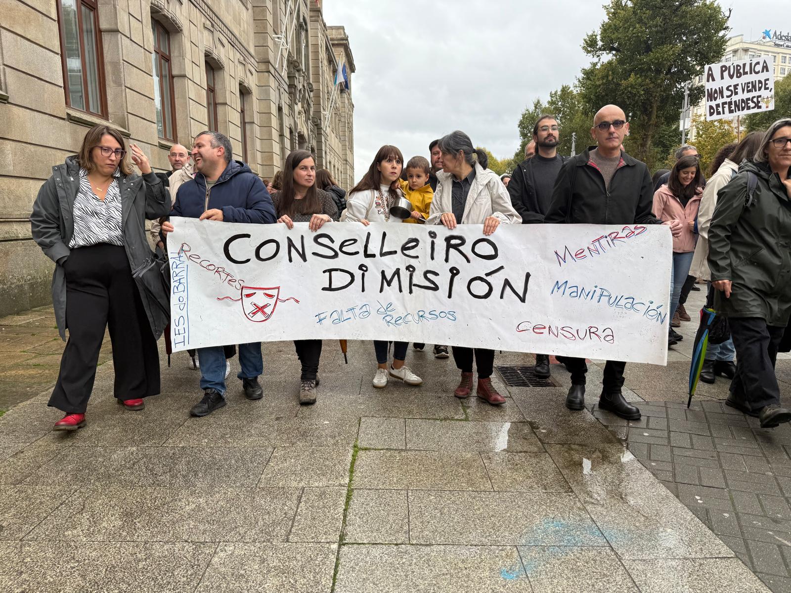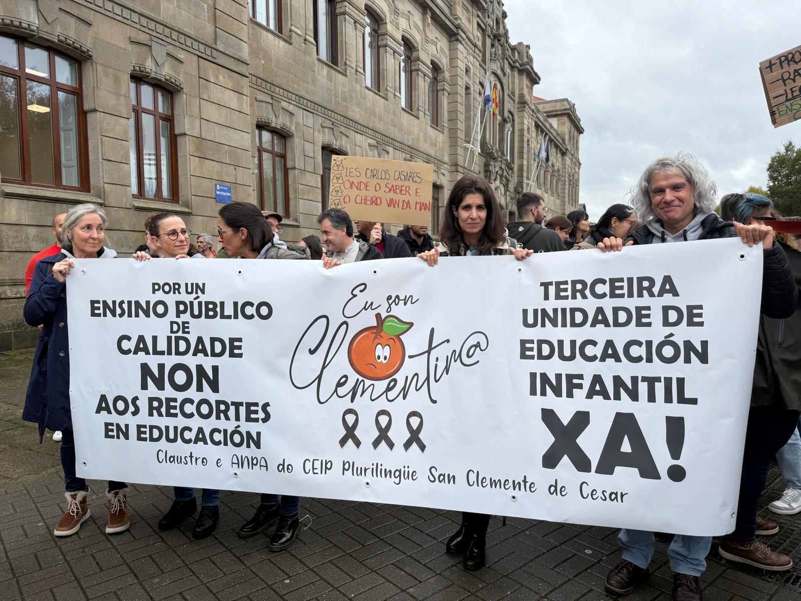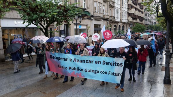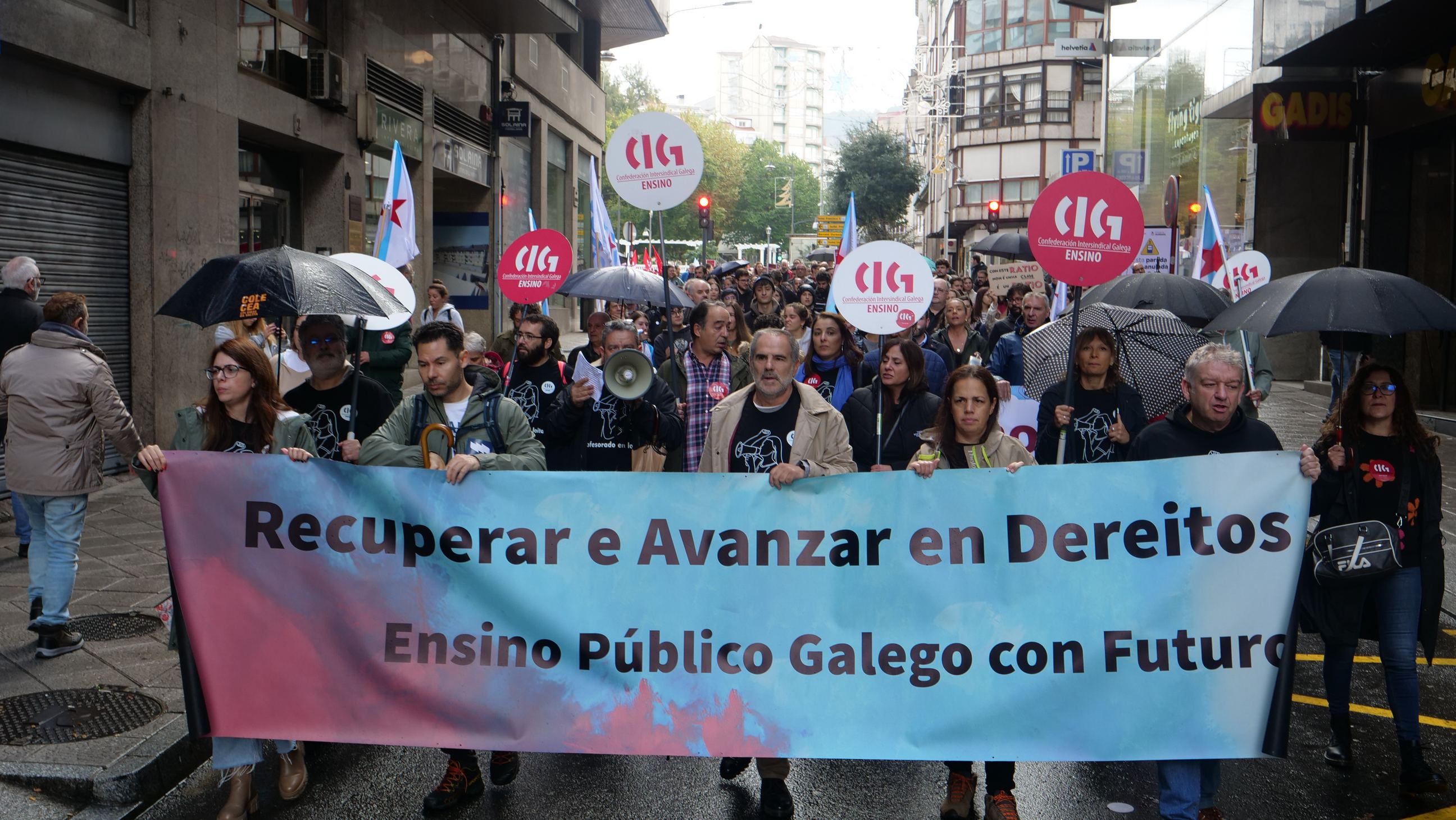 Na Coruña, as persoas manifestantes saíron ás 11:30 horas do Colexio Alborada, onde esta noite se pecharon un grupo de 40 docentes, e marcharon até o edificio administrativo da Xunta en Monelos. A encargada de ler o manifesto final por parte da CIG-Ensino, Xela Armas, recalcou que “o profesorado galego está facendo historia con esta loita iniciada a comezos de curso despois de 15 anos de recortes nos que todas as enerxías e a responsabilidade profesional se volcaron en atender o alumnado".