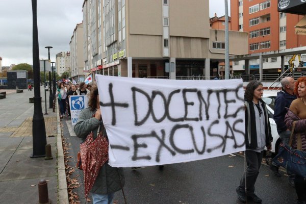 No mesmo sentido se expresou a secretaria comarcal da CIG-Ensino, Tamara Martínez, que leu parte do manifesto en Pontevedra despois de que a marcha percorrera a cidade desde o Instituto Valle Inclán, onde esta noite outro grupo de medio cento de docentes pasou a noite pechado. “A loita é a razón”, canta Mardeafora nunha canción dedicada á loita feminista como único camiño para acadar a igualdade. Pois tomando como exemplo esta loita estamos hoxe aquí imprimindo a nosa pegada na historia do ensino público do noso país”.