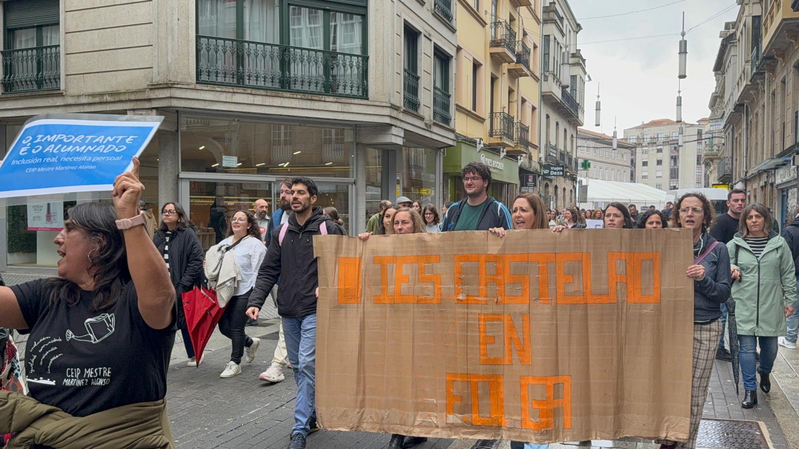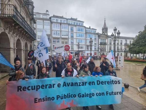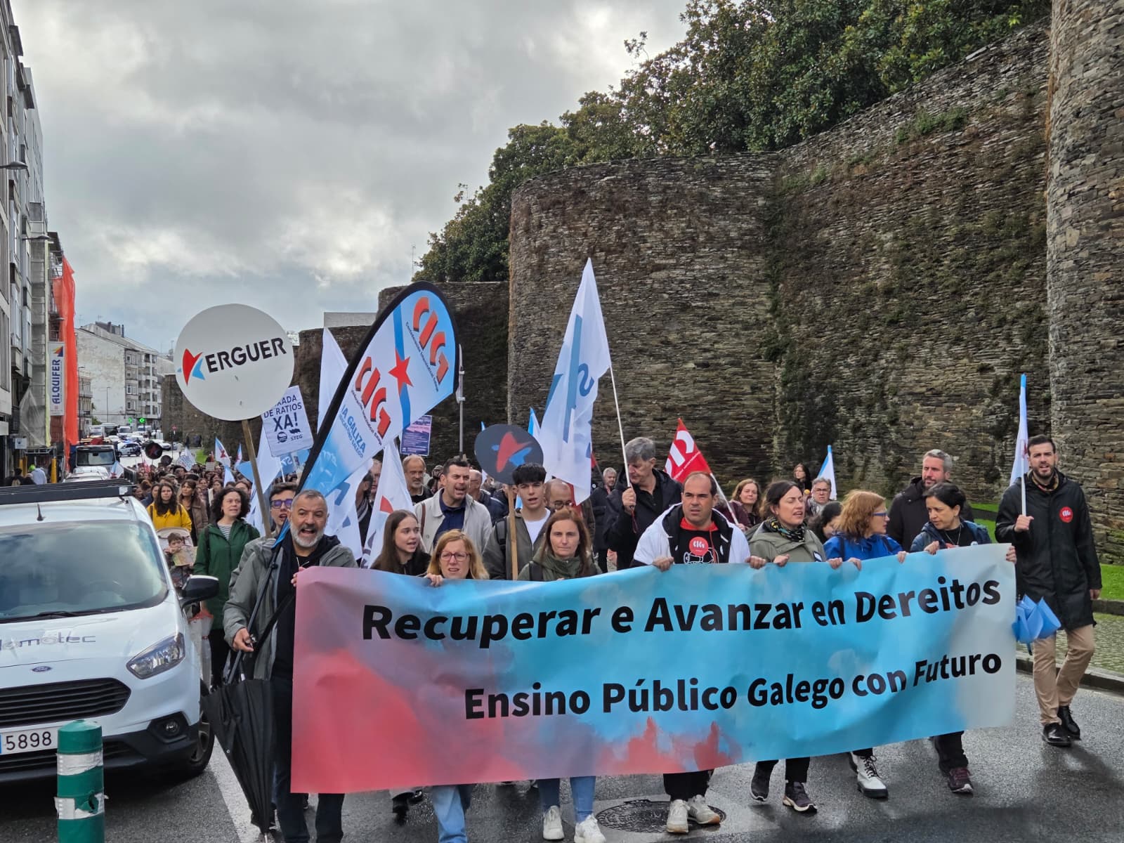 Por último, en Lugo a manifestación saíu da Horta do Seminario, unha praza próxima a varios centros de ensino, incluído o Lucus Augusti ao que unha trintena de persoal docente se achegou onte pola tarde e no que unha representación quedou a durmir, para rematar tamén diante da delegación territorial de Educación.