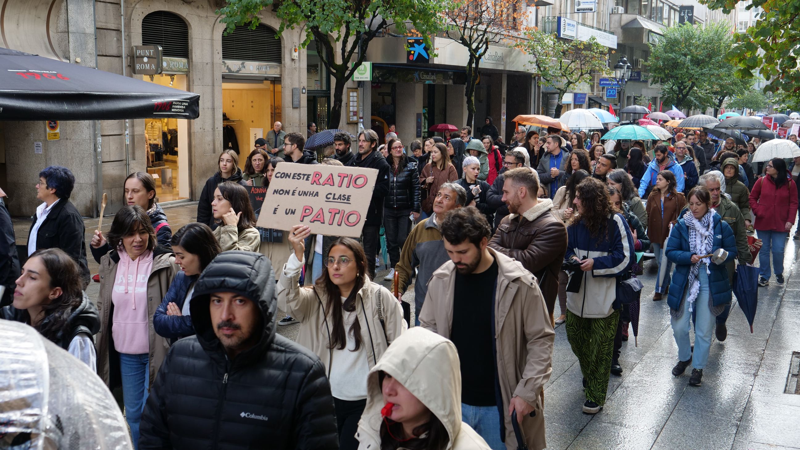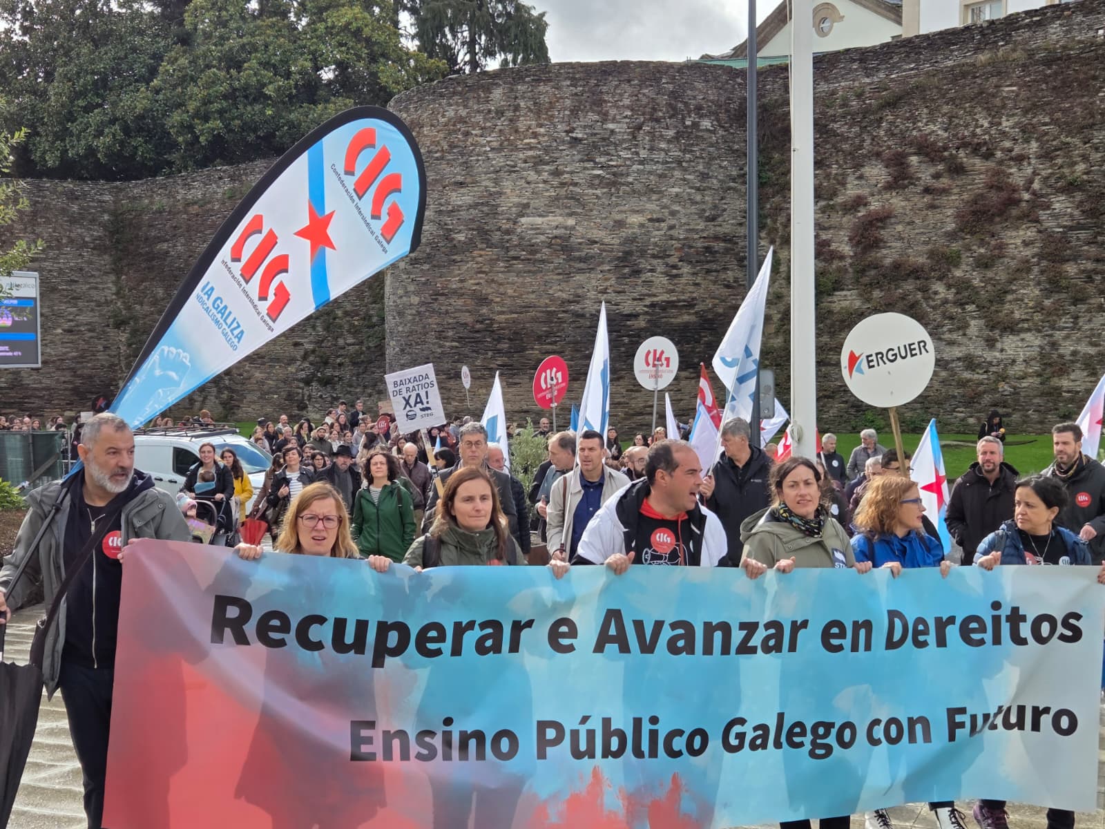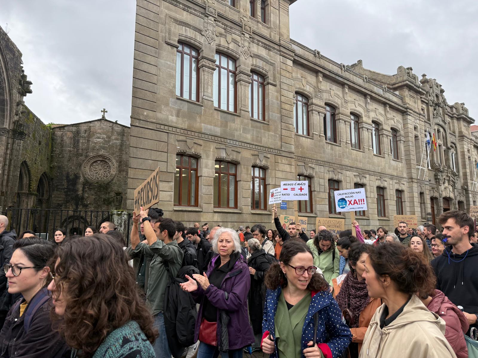 Por último, en Lugo a manifestación saíu da Horta do Seminario, unha praza próxima a varios centros de ensino, incluído o Lucus Augusti ao que unha trintena de persoal docente se achegou onte pola tarde e no que unha representación quedou a durmir, para rematar tamén diante da delegación territorial de Educación.