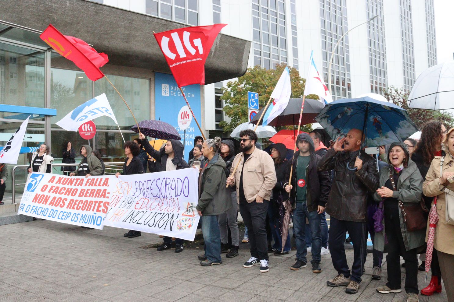 Os ánimos non decaen entre o colectivo do ensino público galego na segunda xornada de folga consecutiva deste mes de outubro. Na mañá deste mércores, un número moi amplo de profesorado respondeu de novo á chamada da CIG-Ensino, unha das organizacións convocantes da folga, a mobilizarse nas catro capitais de provincia para reclamar un xiro radical das políticas da Consellaría de Educación. E fíxoo cunha asistencia que superou as previsións, malia o mal tempo, malia que onte moitas persoas xa acudiran á manifestación en Compostela e malia a fartura que senten no seu traballo polos recortes, a falta de valorización e a privatización