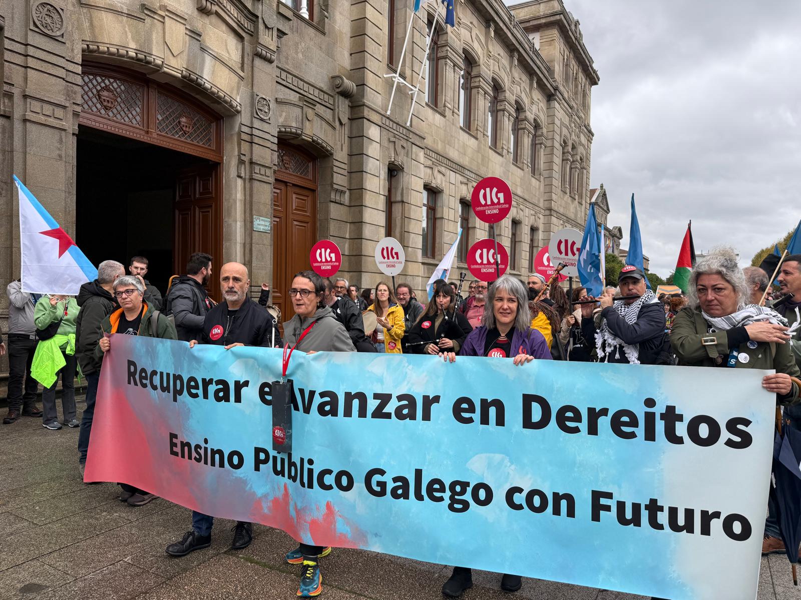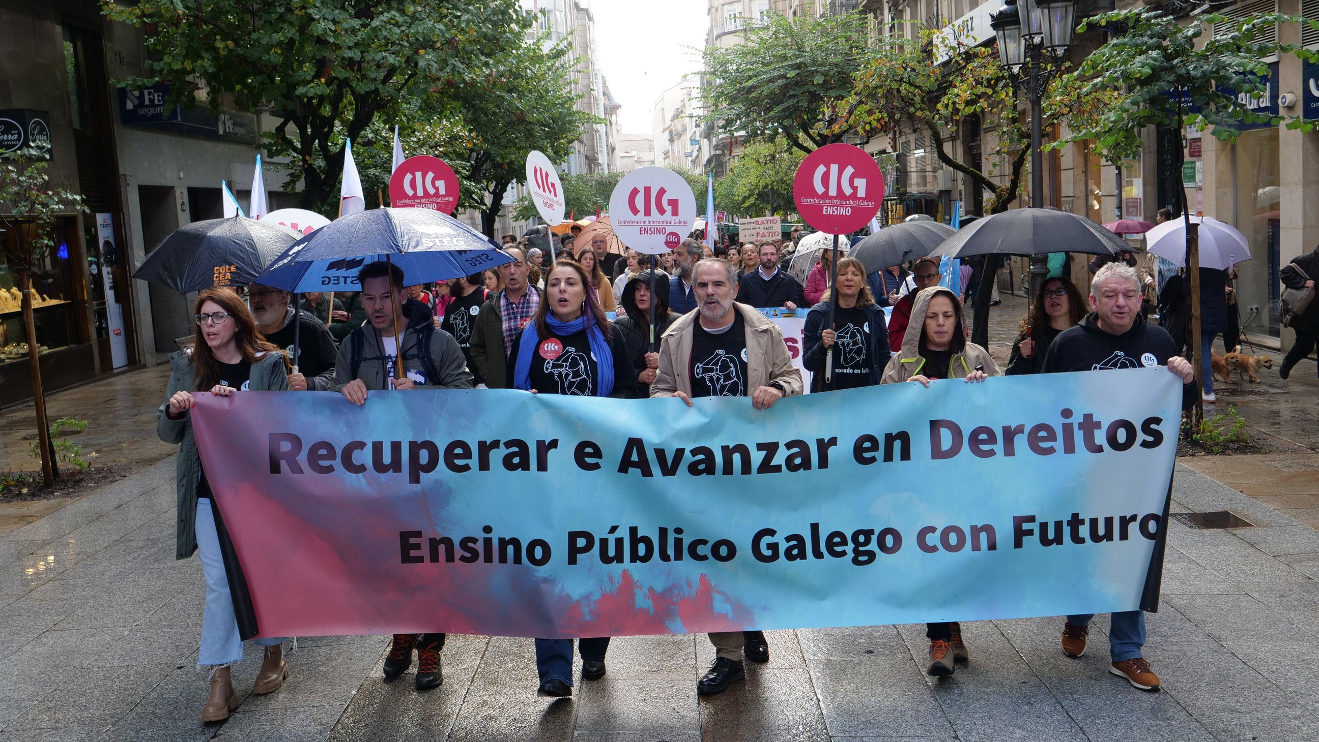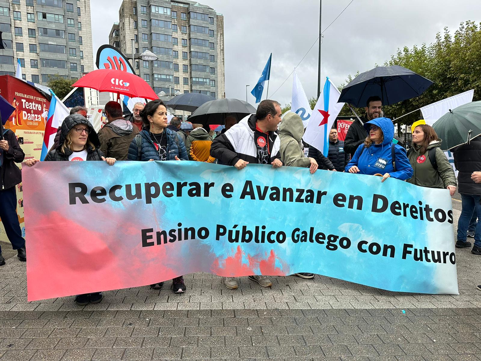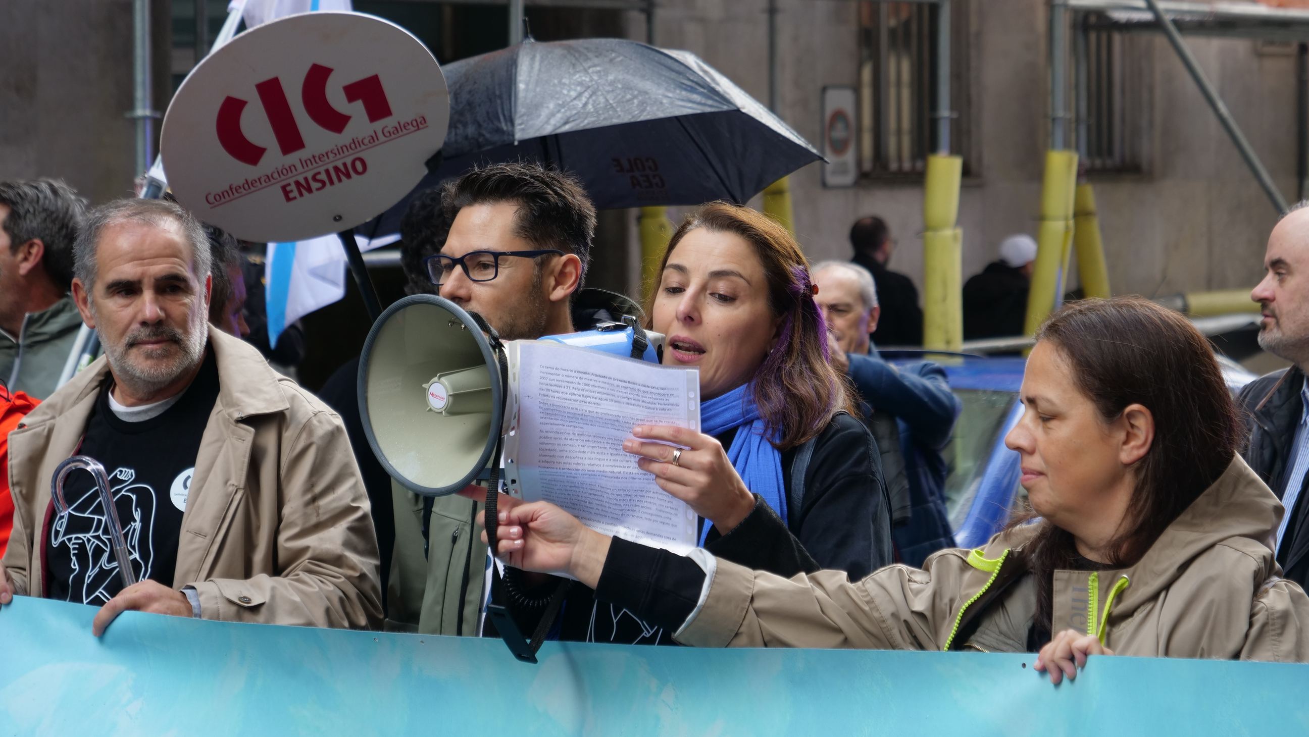 Na súa intervención lembrou que “as reivindicacións de melloras laborais van todas unidas á mellora do ensino público xeral, da atención educativa e da equidade social. Por iso esta loita é tan importante. Porque está en xogo o futuro da nosa sociedade, unha sociedade máis xusta e igualitaria. Está en xogo tamén que o noso alumnado non descoñeza a súa lingua e a súa cultura, que teña pensamento crítico e adquira nas aulas valores relativos á convivencia en paz, ao respecto aos dereitos humanos e á protección do noso medio natural. E está en xogo a nosa dignidade profesional e social, tan castigada e maltratada nos últimos anos pola administración galega”.
