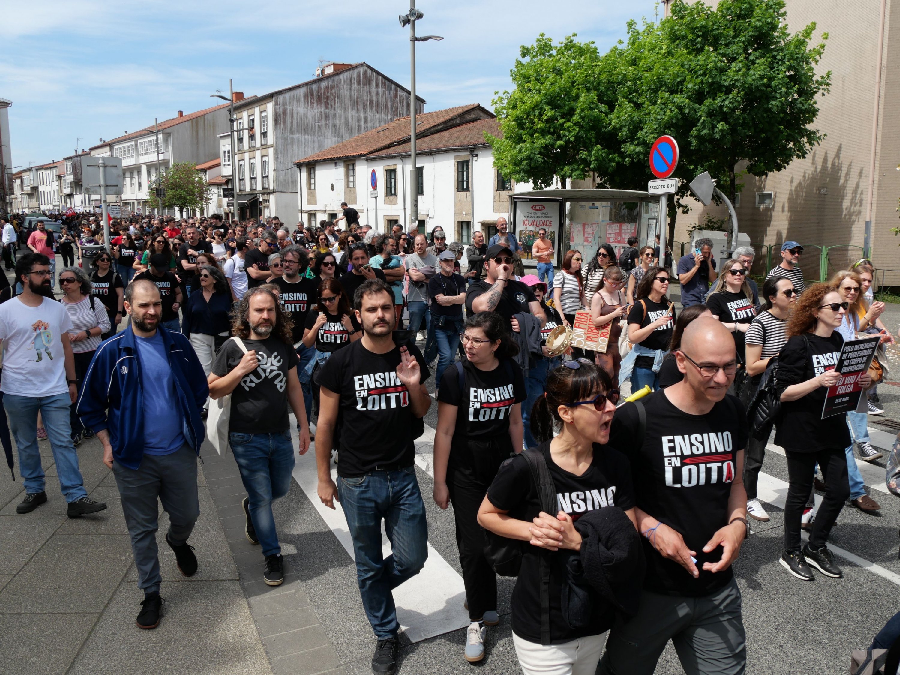 A mobilización desenvolveuse no marco da nova xornada de folga convocada en todo o ensino non universitario e rematou diante do complexo administrativo da Xunta en San Caetano coa lectura dun manifesto a cargo de sete docentes que representan os distintos colectivos e ensinanzas. Coa de hoxe, son xa seis as xornadas de folga que secunda o profesorado dende que comezou o curso actual, despois de 16 anos de recortes aplicados polo Goberno do PP.