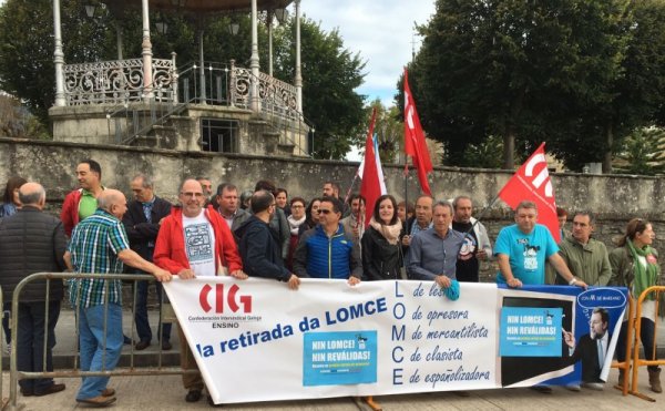 A razón desta concentración de delegados e delegadas da CIG-Ensino con motivo da inauguración oficial da FP é a de amosar o máis contundente rexeitamento á LOMCE e ás reválidas e exixir a súa paralización. Unha petición demandada maioritariamente polo conxunto da comunidade educativa galega, tal e como demostrou a insubmisión ás reválidas de 3º e de 6º de Primaria o curso pasado, cando o 80% das familias non mandaron aos seus fillos e fillas a realizar estas probas.