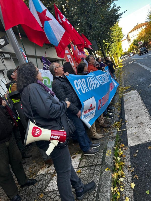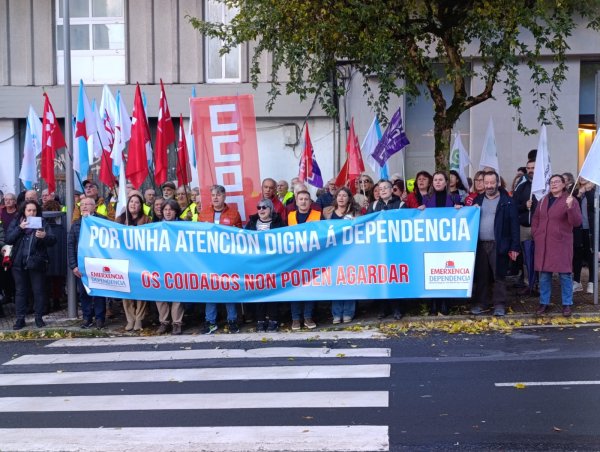 Ducias de persoas concentráronse este luns ás portas do Pazo do Hórreo para reclamar políticas públicas xustas e unha atención digna ás persoas dependentes. A protesta, convocada pola Plataforma Emerxencia Dependencia (da que a CIG fai parte), coincidiu co debate da totalidade dos orzamentos xerais de Galiza para 2026 no parlamento galego.