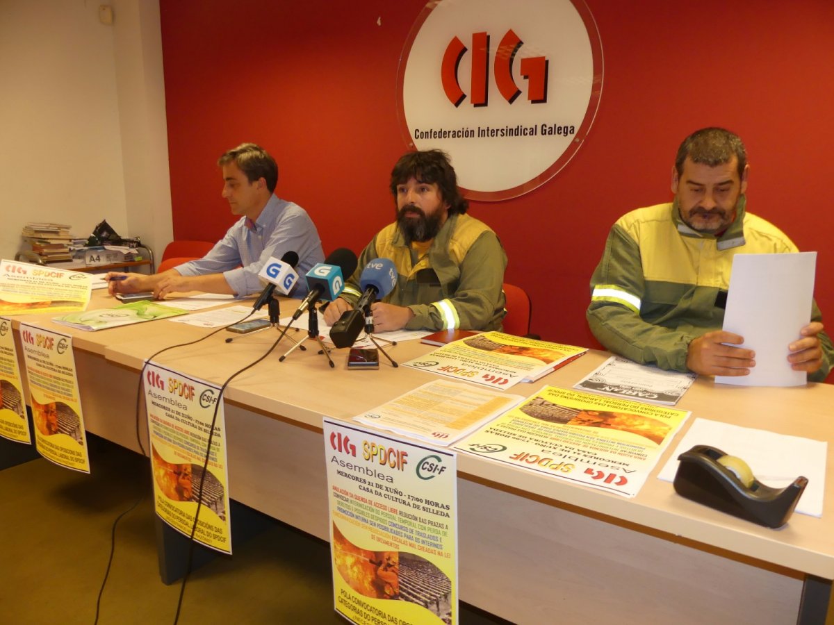 Representantes da CIG e do CSIF compareceron esta mañá en rolda de prensa para exixir a inmediata convocatoria da OPE como persoal laboral no Servizo de Prevención e Defensa contra os Incendios Forestais da Xunta de Galiza (SPDCIF). Un servizo público no que, segundo denunciaron, a temporalidade afecta ao 40% dos traballadores/as e non se convoca ningunha Oferta de Emprego Público desde o ano 2003. Por iso anunciaron a celebración dunha asemblea informativa á que está convocado todo o persoal, para este mércores, día 21 de xuño, ás 17:00 horas, na Casa de Cultura de Silleda.