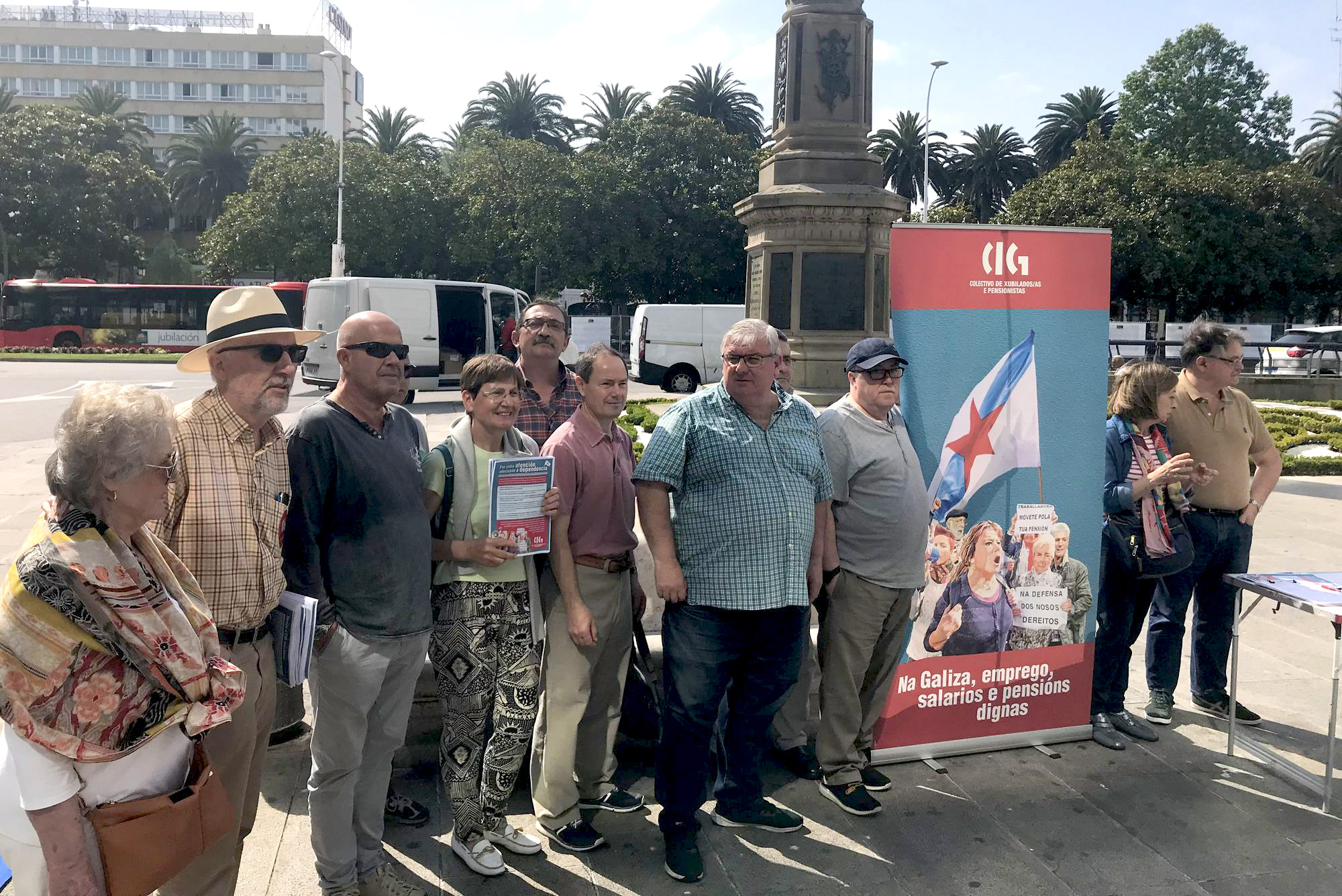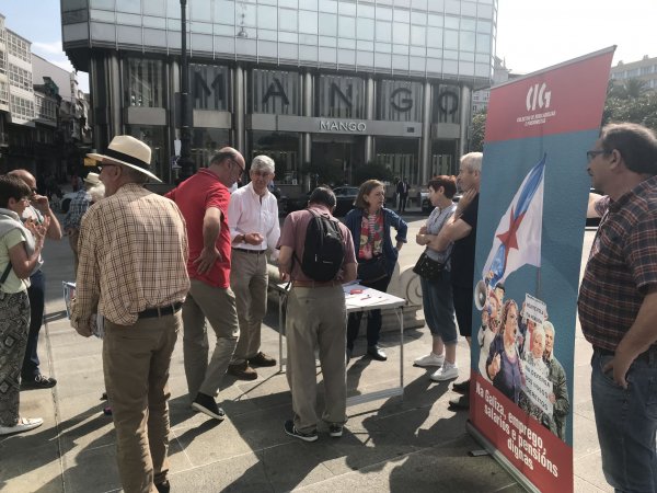 O colectivo de Persoas Xubiladas e Pensionistas da CIG da Coruña realizou unha recollida de sinaturas na mañá deste xoves no Obelisco, dentro da campaña que a central sindical está a desenvolver para esixir medidas que garantan unha atención adecuada á dependencia e ás persoas maiores.