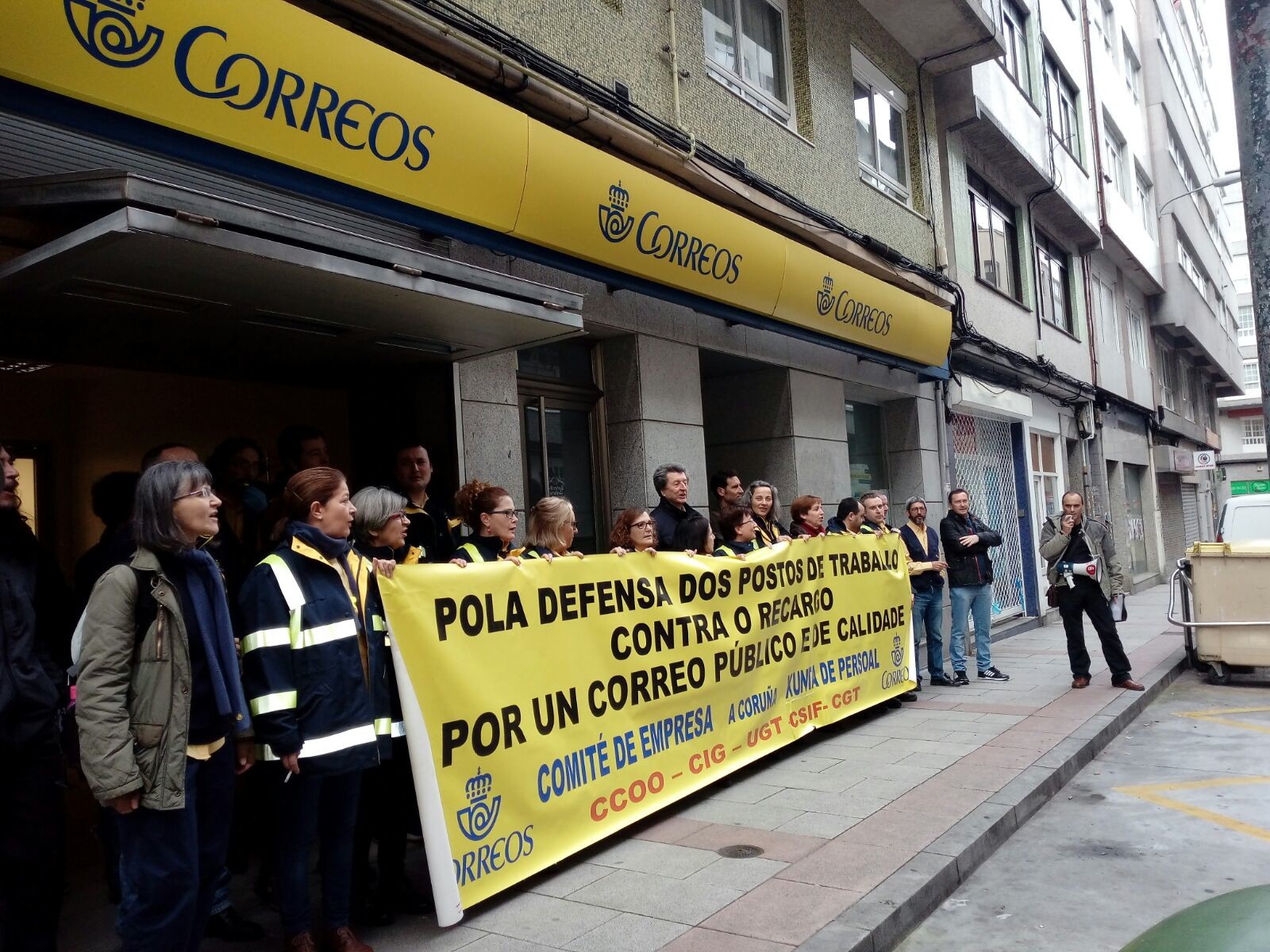 Ante este ataque, a Xunta de Persoal e o Comité de empresa acordaron realizar concentracións diarias diante da unidade de reparto nº3 (situada na rúa Entrepeñas) en defensa dos postos de traballo e da calidade do servizo postal nos barrios afectados (Agra do Orzán, Os Rosais, Ventorrillo, Labañou, Cidade Escolar, A Silva, S. Roque de afora, Cidade Xardín e S. Pedro de Visma).