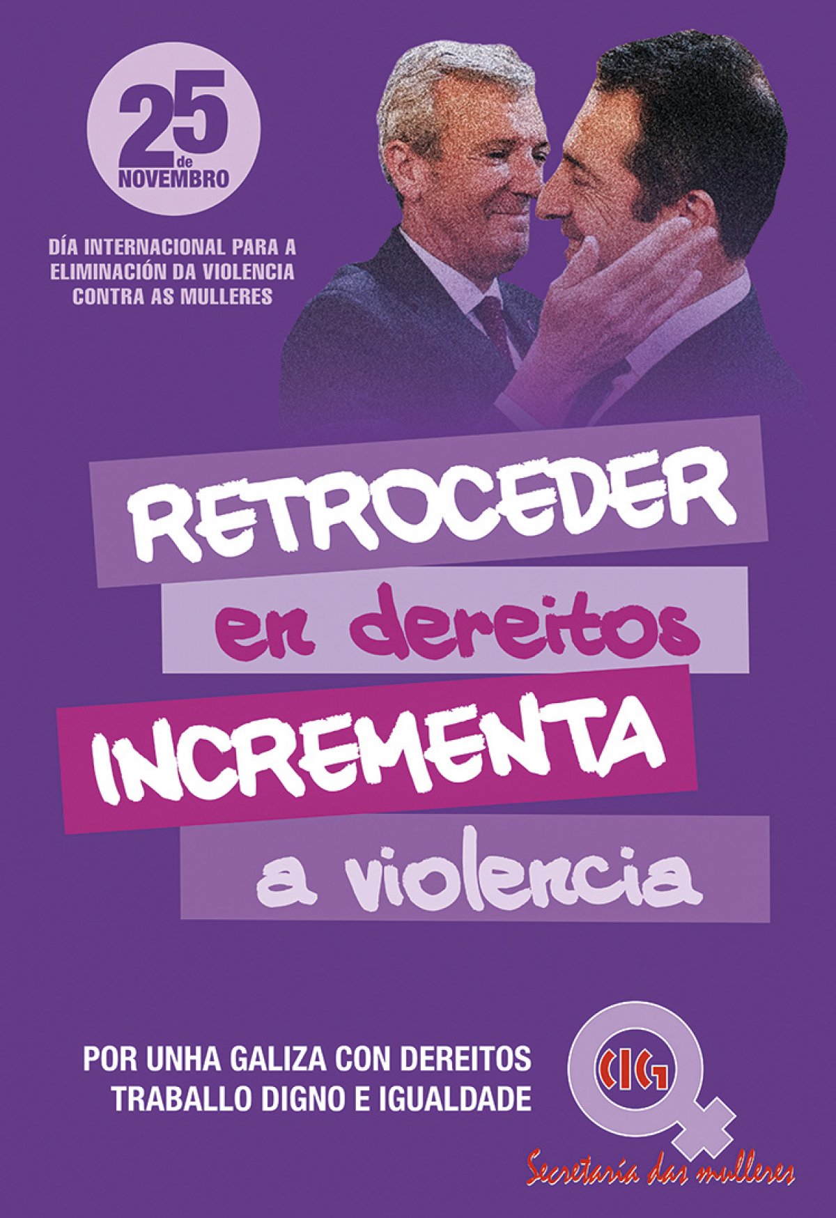 Este 25 de Novembro, Día internacional para a eliminación da violencia contra as mulleres, a Secretaría das Mulleres da CIG lanza unha campaña para denunciar a permisividade das condutas machistas nas institucións públicas e reclamar que se revertan os recortes en materia de igualdade aplicados pola Xunta de Galiza.
