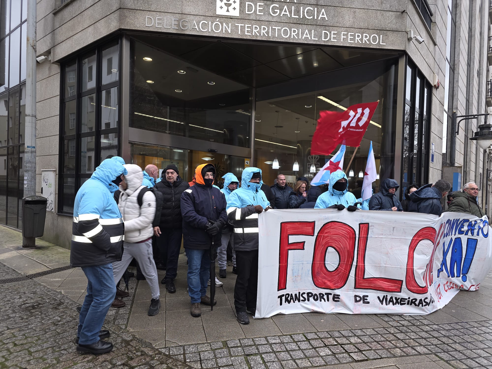Para darlle visibilidade á súa loita, ademais dos piquetes informativos despregados dende primeira hora, o persoal concentrouse na estación da Coruña e diante do edificio da Xunta en Ferrol, mentres que en Compostela saíron en manifestación dende as cocheiras de Monbús en Amio.