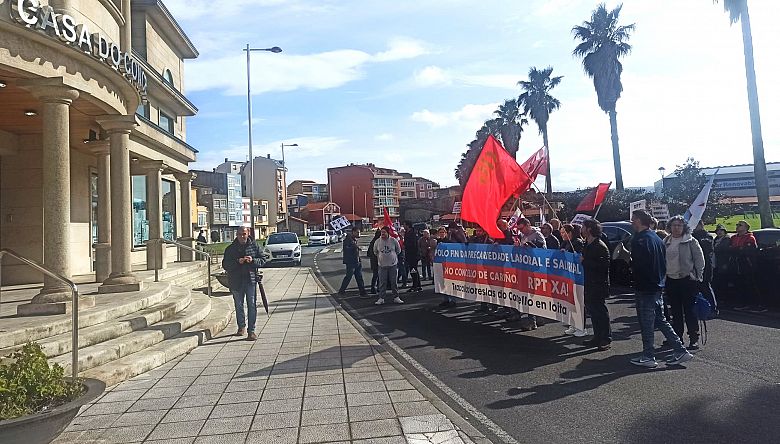 Ademais, para visibilizar e socializar a súa loita entre a veciñanza, as traballadoras e traballadores manifestáronse esta mañá dende O Sagrón até a Casa Consistorial, onde deron lectura a un comunicado.