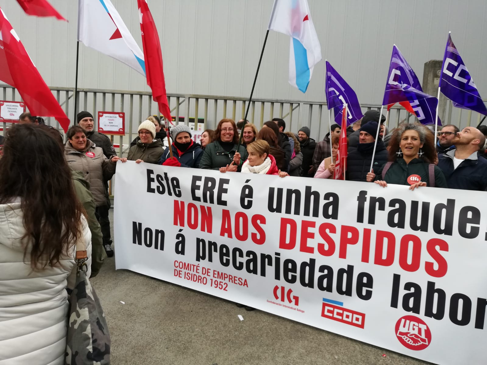 Practicamente o 100% do persoal de Isidro 1952 está secundando a folga convocada na empresa para demandar a paralización do ERE de extinción e á modificación substancial das condicións laborais e salariais que a dirección pretende aplicar. Ademais, con esta medida de presión as traballadoras e os traballadores tamén esixen o cobro dos seus salarios, xa que teñen pendente de percibir parte da nómina de novembro e todo o soldo de decembro.