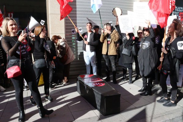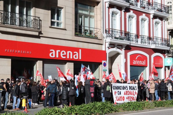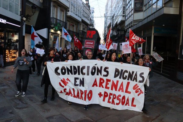 As traballadoras e traballadores das tendas Arenal da provincia da Coruña están este venres en folga para demandar uns salarios dignos e un reforzo do persoal. Denuncian que máis do 70% do persoal (a maioría mulleres) cobra o SMI, malia os avultados beneficios da empresa. Por iso hoxe, coincidindo co Black Friday, acordaron saír á rúa para reclamar cobrar "como as compañeiras que están reguladas polo convenio do comercio vario".