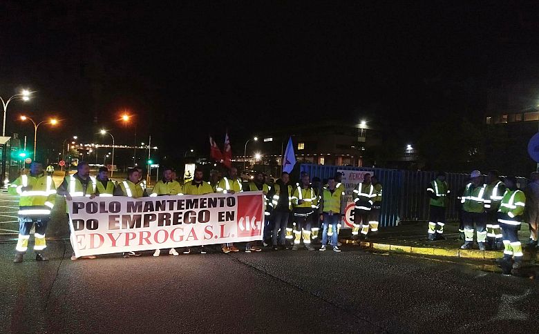 O 100% do persoal de Edyproga secundou este martes a folga de unha hora convocada en resposta ao despedimento de seis traballadores. Coincidindo co paro laboral, que ten carácter indefinido, o persoal desta auxiliar de Alcoa saíu ás 7 de mañá en manifestación dende o restaurante Sierra até a porta da factoría para exixirlle á multinacional que execute os investimentos e cumpra co plan de viabilidade.