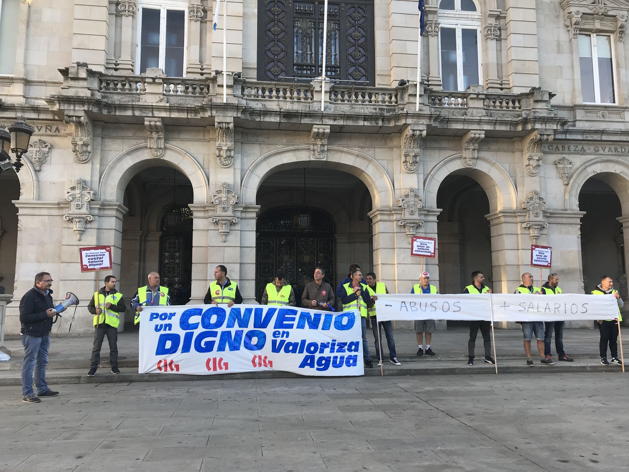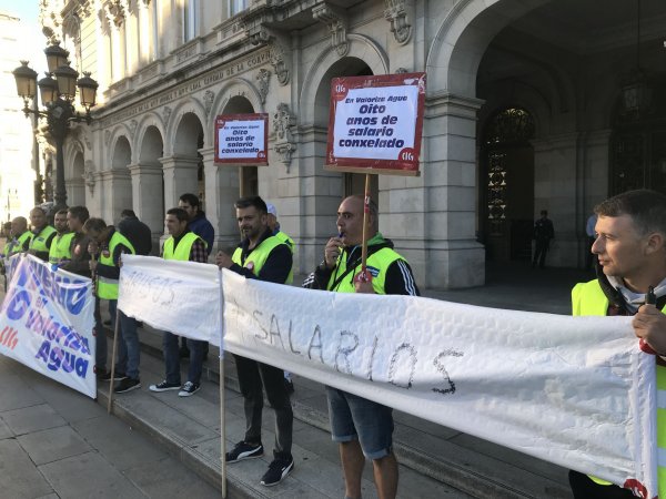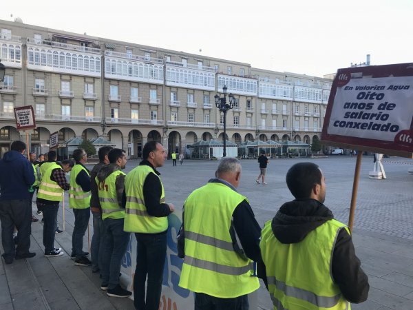 Cómpre lembrar que os traballadores de Valoriza Auga levan oito anos cos salarios e as condicións laborais conxeladas, a pesar de que nese tempo a empresa obtivo beneficios grazas á suba do prezo/hora que cobra pola prestación do servizo. Ademais, a concesionaria nin sequera cumpre co establecido nos pregos de condicións, xa que os soldos do persoal son un 20% máis baixos que os publicados nos pregos.