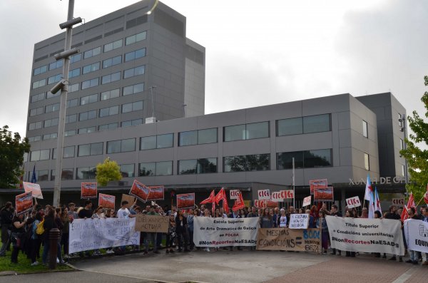 As e os 34 docentes e 170 estudantes matriculados/as no único centro que imparte ensinanzas superiores de arte dramática no noso país continúan en folga contra os recortes de profesorado. Mañá está previsto que se celebre unha reunión da Permanente da Xunta de Persoal de Pontevedra, na que se abordará este asunto.