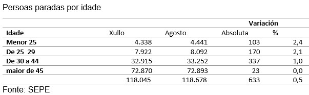 O mes de agosto rematou en Galiza con 118.678 persoas desempregadas, 633 máis que no mes de xullo (+0,54%). Máis unha vez todo o desemprego rexistrado afecta ás mulleres, entre as que sobe un 59,2%. Houbo, ademais, 486 persoas afiliadas á Seguridade Social en alta laboral menos. Unha caída de afiliación que afectou, case exclusivamente, ás persoas con contrato indefinido.