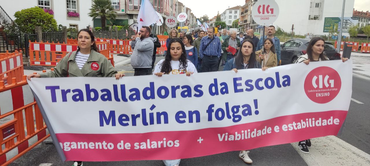 Traballadoras da Escola Infantil Merlín (no Concello de Ames) concentráronse novamente este martes para rexeitar o despedimento dunha compañeira e denunciar a represión sindical que está a sufrir. Para a CIG-Ensino, a decisión empresarial responde a unha persecución contra da traballadora que foi na candidatura da central nacionalista nas eleccións da escola e reitera que non existen condicións obxectivas para o despedimento.