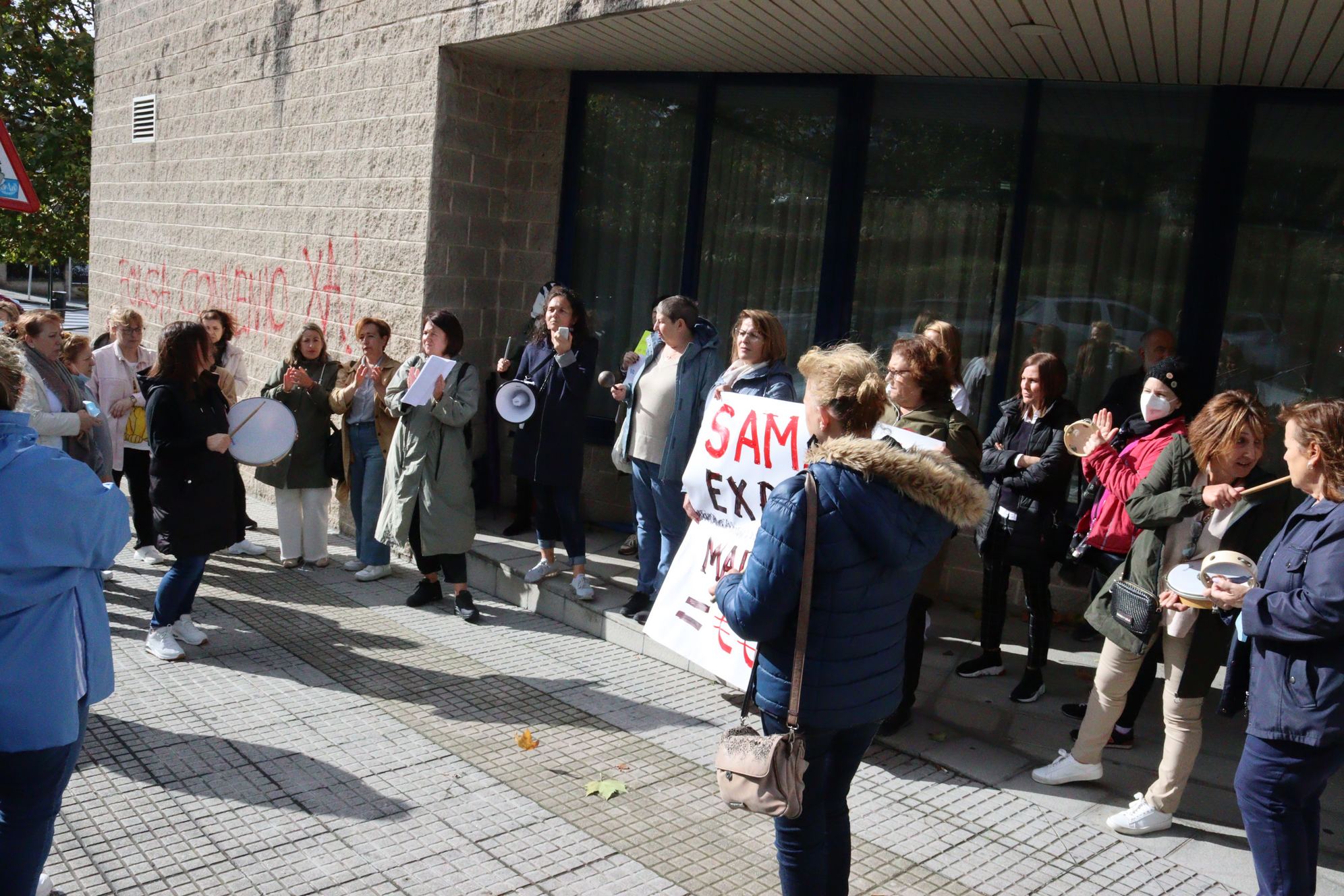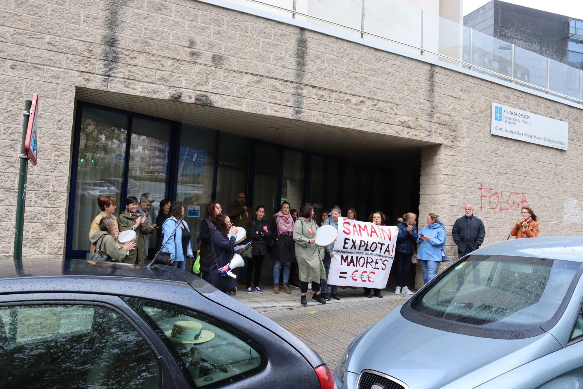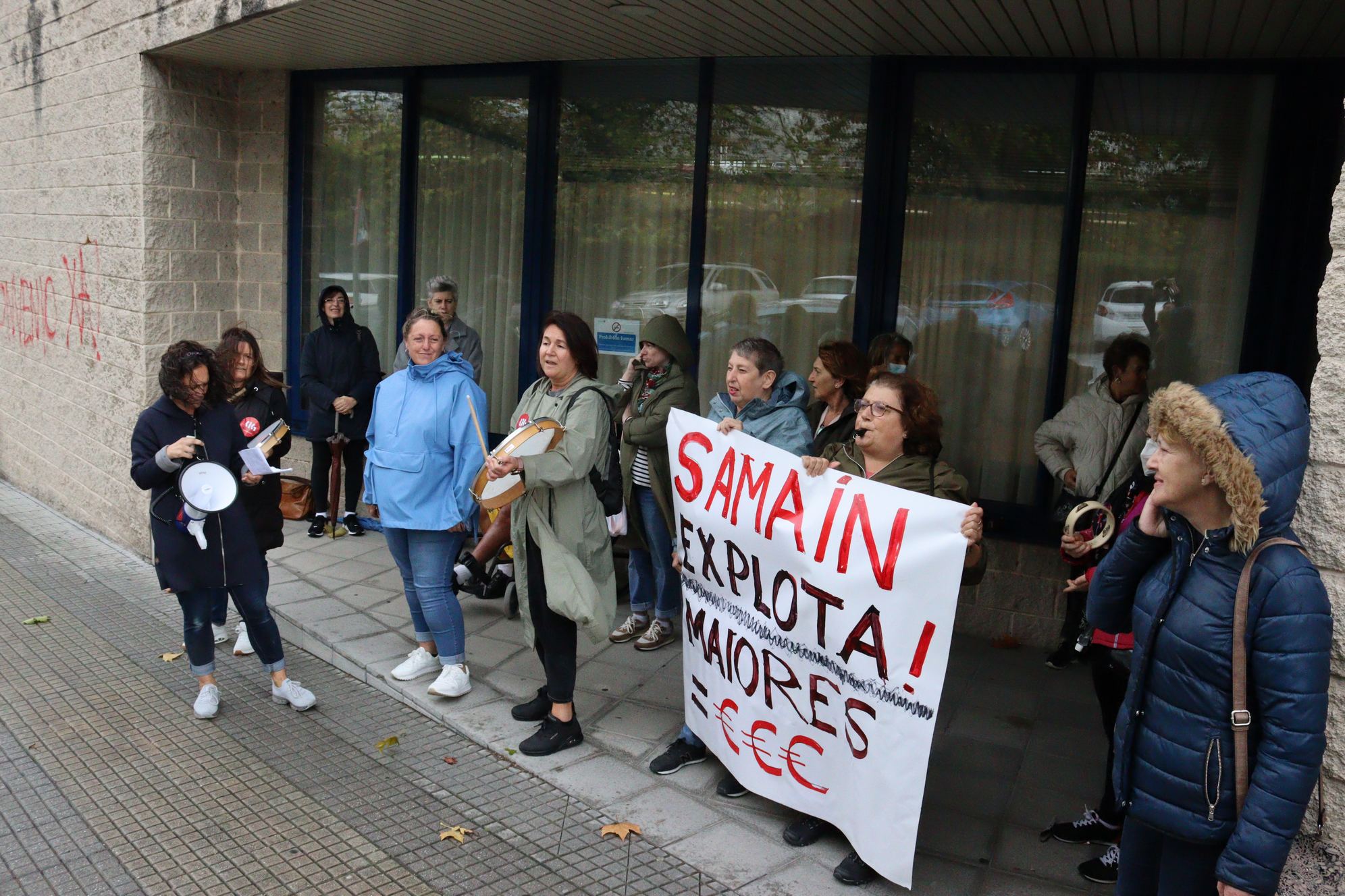 "Samaín explota, Samaín recauda" ou "a Xunta non ten vergoña por permitir esta carroña", foron algunhas das consignas que as traballadoras da residencia de maiores Concepción Arenal corearon este xoves durante a concentración en protesta pola falta de persoal e a precarísima atención que, por este motivo, se está a prestar ás persoas residentes.