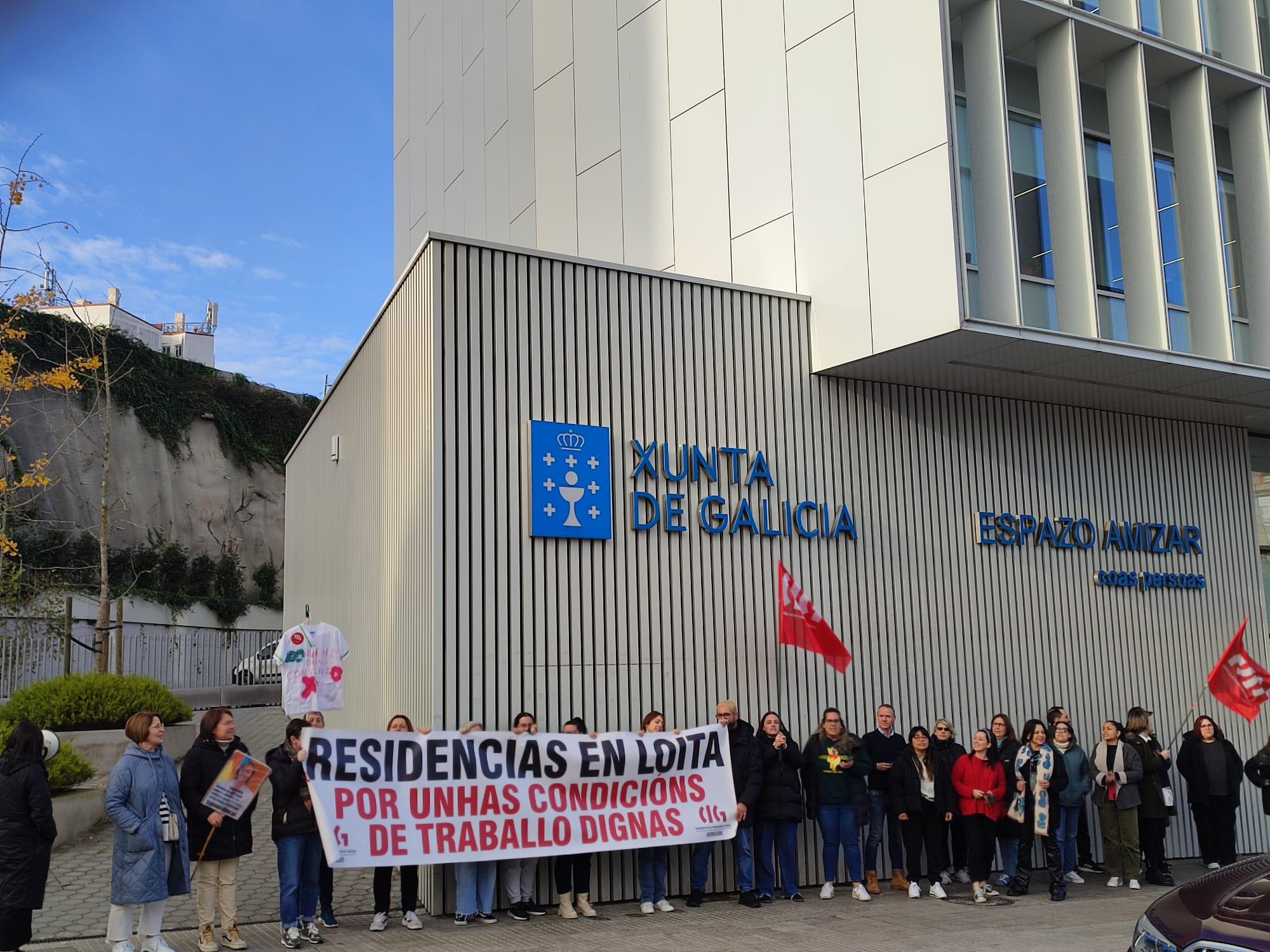 As traballadoras de residencias privadas continuaron este xoves na Coruña co calendario de mobilizacións para reclamar un convenio colectivo digno, fronte á proposta insuficiente da patronal e á parálise da negociación colectiva.