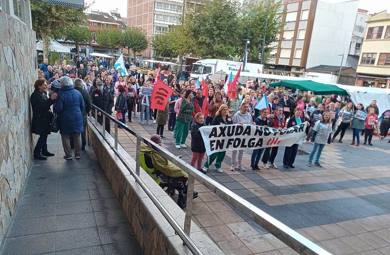 A protesta fai parte do intenso calendario de mobilizacións que o colectivo de empregadas dos SAF está a desenvolver no marco da folga indefinida convocada no sector pola central nacionalista dende o pasado mércores día 2. O paro está a ter un amplo seguimento por parte das traballadoras, superando unha porcentaxe media do 80% nas dúas primeiras xornadas. “A implicación das traballadoras é cada vez maior, conscientes da ameaza que supón que o preacordo contemple unha dobre escala salarial con dúas táboas diferenciadas dependendo de cando se liciten os contratos”, salienta a secretaria nacional da CIG-Servizos, Transi Fernández.