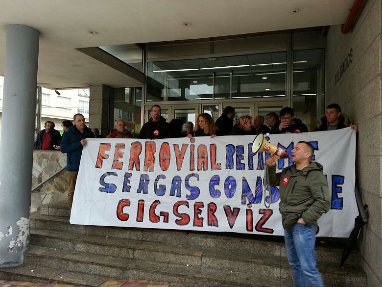 Traballadoras/es de Ferrovial Servizos concéntranse nos xulgados de Ferrol para denunciar a represión laboral