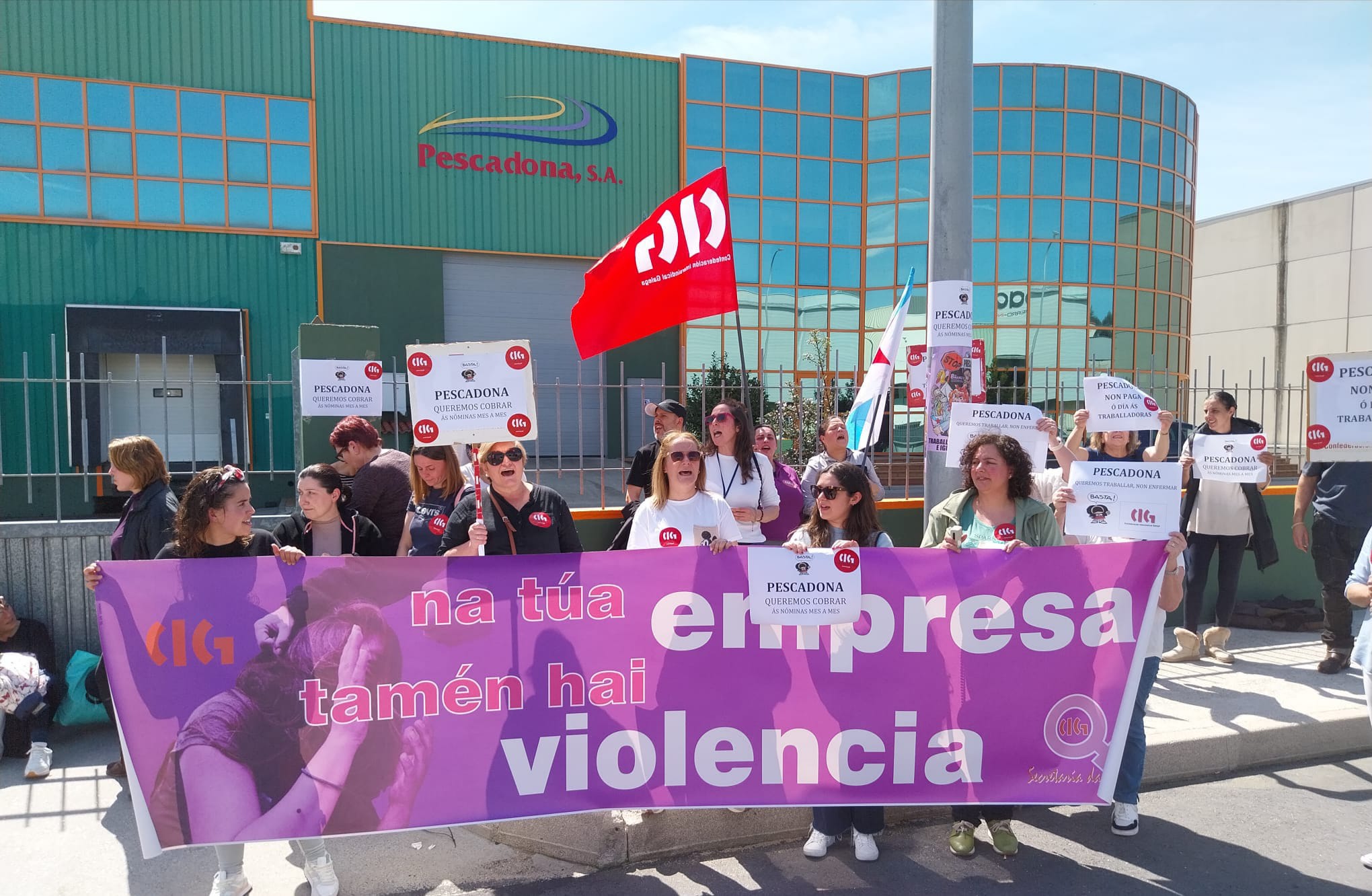 Traballadoras/es da fábrica de Pescadona en Cambados desenvolveron onte unha concentración ás portas da empresa para reclamar o pago dos salarios pendentes e rexeitar a represión laboral. Dende a FGAMT-CIG do Salnés instan a dirección a normalizar as relacións coa representación sindical -que vén de ser escollida por primeira vez- a elaborar un calendario para o cumprimento do convenio colectivo do sector da conserva.