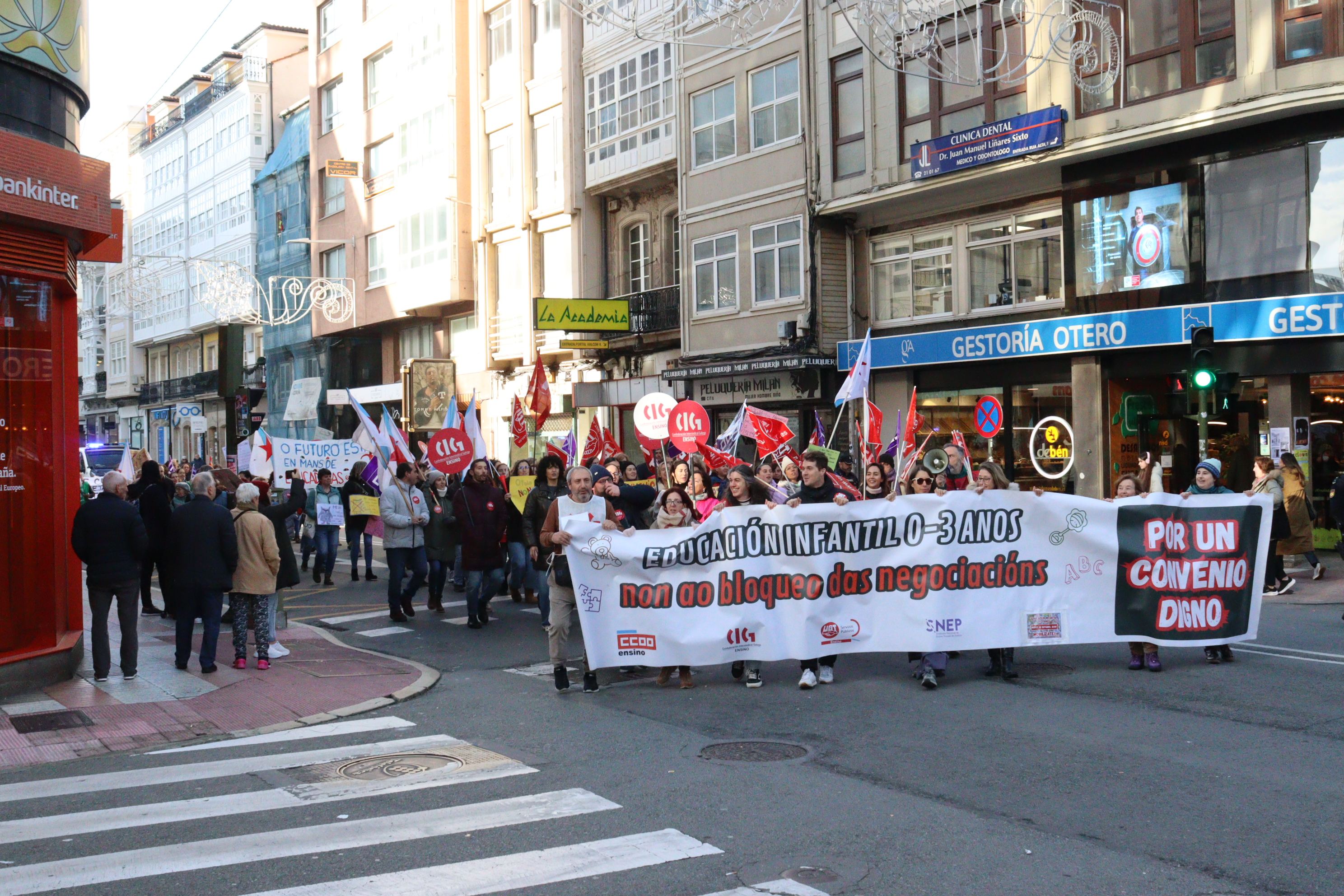 As traballadoras das escolas infantís mobilízanse na Coruña e Vigo na sexta xornada de folga