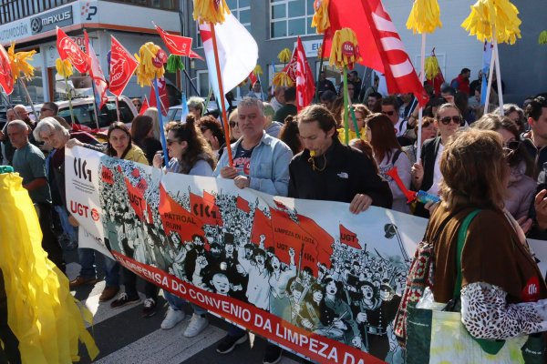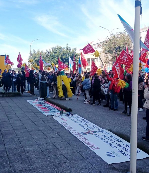 Armadas coas súas fregonas amarelas, traballadoras da limpeza mobilizáronse este mércores na Coruña diante do Grupo Eulen e de Clece para reclamarlle á patronal estatal ASPEL (da que ambas empresas forman parte) que aplique de inmediato a revisión salarial do 9,8%, segundo o pactado no convenio, e que cese no seu bloqueo á negociación colectiva. Estas protestas marcan o inicio dun calendario de mobilizacións no que as centrais sindicais CIG e UGT xa adiantaron que non descartan adoptar ningunha medida de presión.