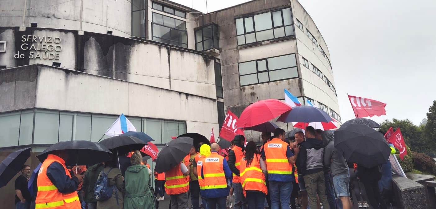 Traballadores/as de ambulancias concéntranse en Sanidade polo atraso na licitación dos contratos