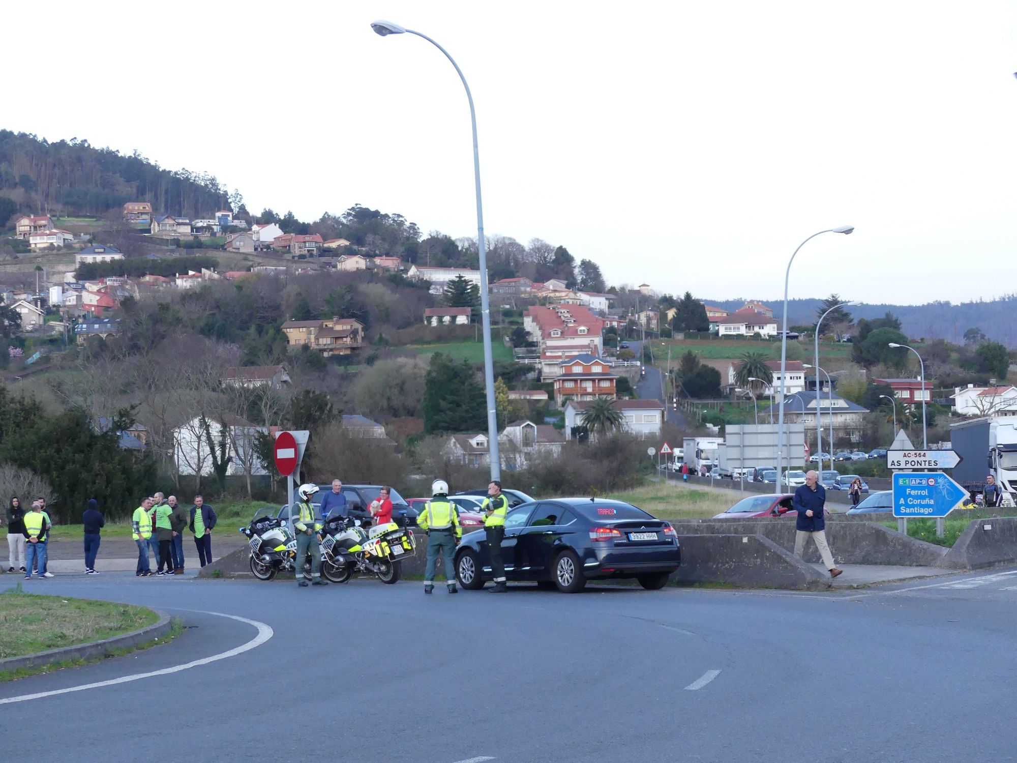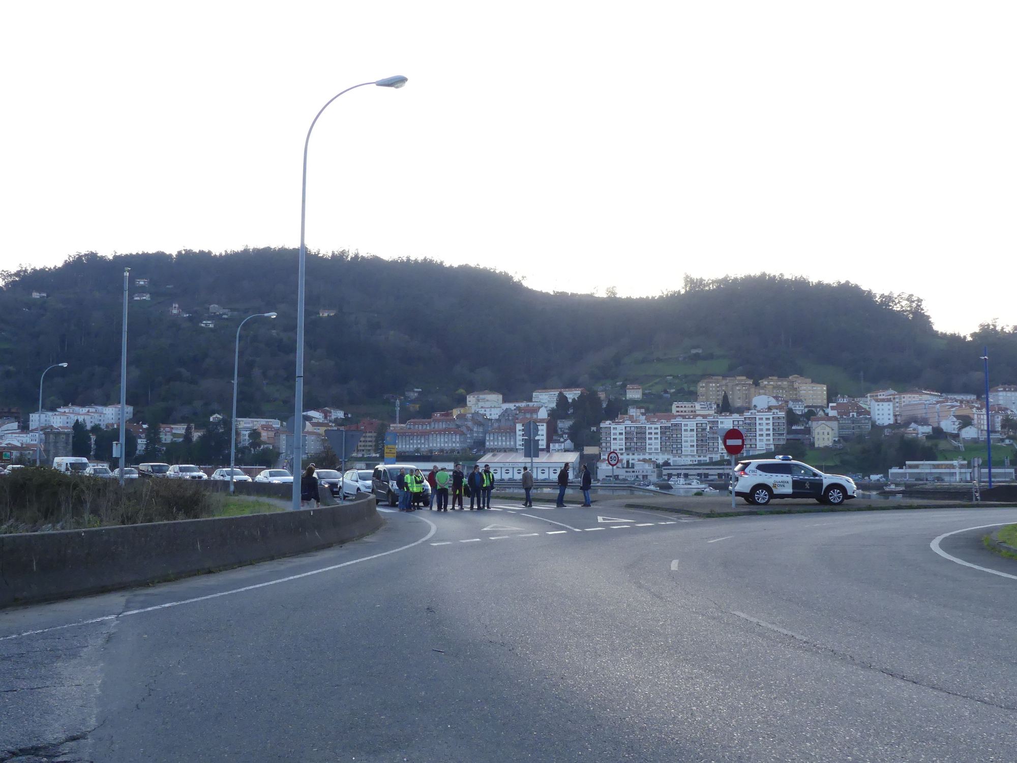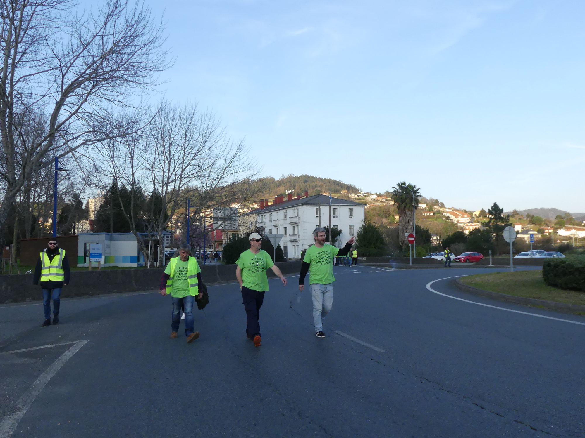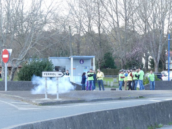 Por volta das seis da tarde, un grupo de persoas permanecía nas Pontes para facer unha concentración-corte de tráfico na rotonda de acceso á central térmica mentres que outro grupo máis numeroso se despregaba en todos os accesos da rotonda da ponte que une Cabanas e Pontedeume, onde permaneceron por espazo de case de unha hora, portando unha faixa e camisetas con lemas en defensa do emprego nas auxiliares.