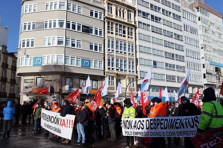Traballadores e traballadoras de Alu Ibérica, en folga indefinida dende o pasado 26 de decembro para esixir a readmisión dunha compañeira e o cese da persecución sindical, marcharon este sábado dende a fábrica até a Delegación do Goberno para demandar a intervención inmediata das administracións española e galega que permita retomar a actividade industrial e garantir o mantemento dos empregos.