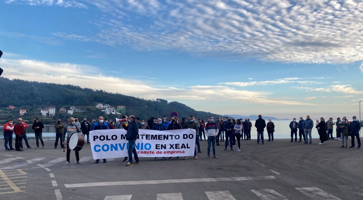 Os traballadores e as traballadoras de XEAL concentráronse na tarde de onte mércores diante da fábrica de Cee en rexeitamento ás pretensións da dirección de recortar os dereitos laborais e salariais deixando decaer o convenio propio para pasar a aplicar o convenio de sector, de condicións inferiores. Coa protesta tamén se reclama un calendario para o rearranque dos fornos e un plan industrial e de investimentos que garanta o mantemento dos postos de traballo, así como a recuperación de todas as capacidades produtivas e dos empregos destruídos.