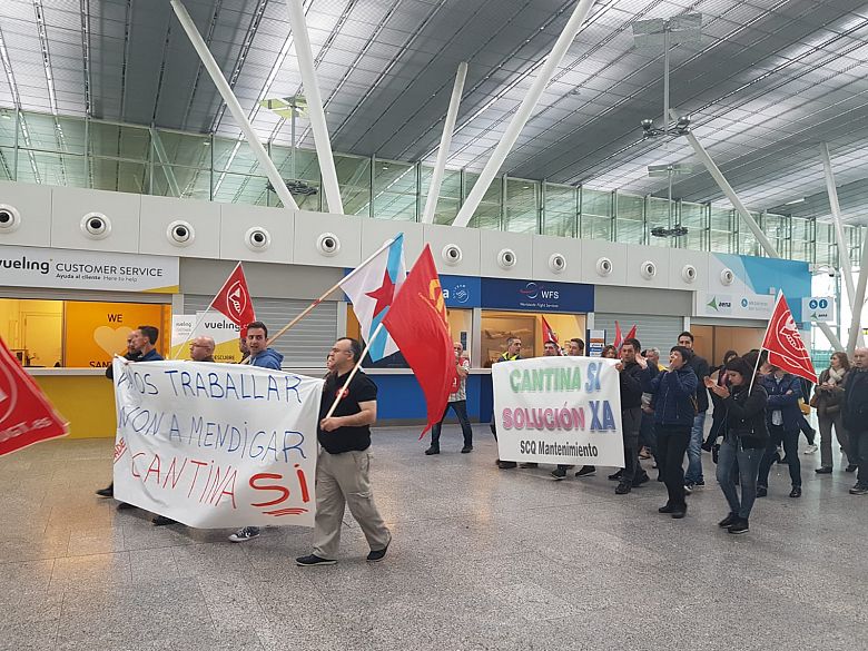 Traballadores/as do aeroporto Rosalía de Castro mobilízanse polo mantemento da cantina