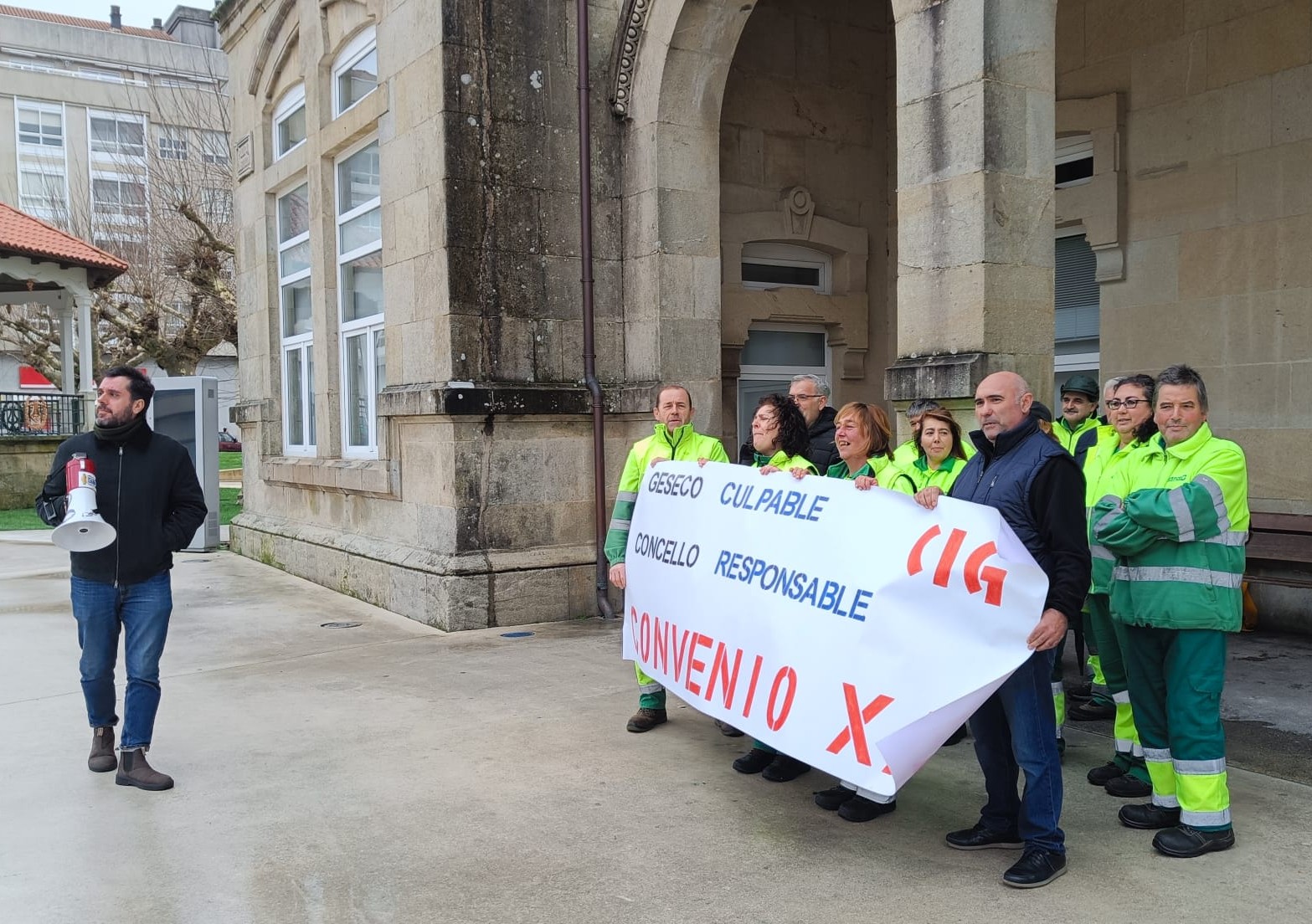 A protesta realizouse coincidindo coa celebración do Pleno Municipal no que se abordou esta problemática e no que tamén interviu o presidente do comité, Ricardo Méndez, para expor a situación na que se atopa o servizo "no que, a día de hoxe hai 18 persoas menos".