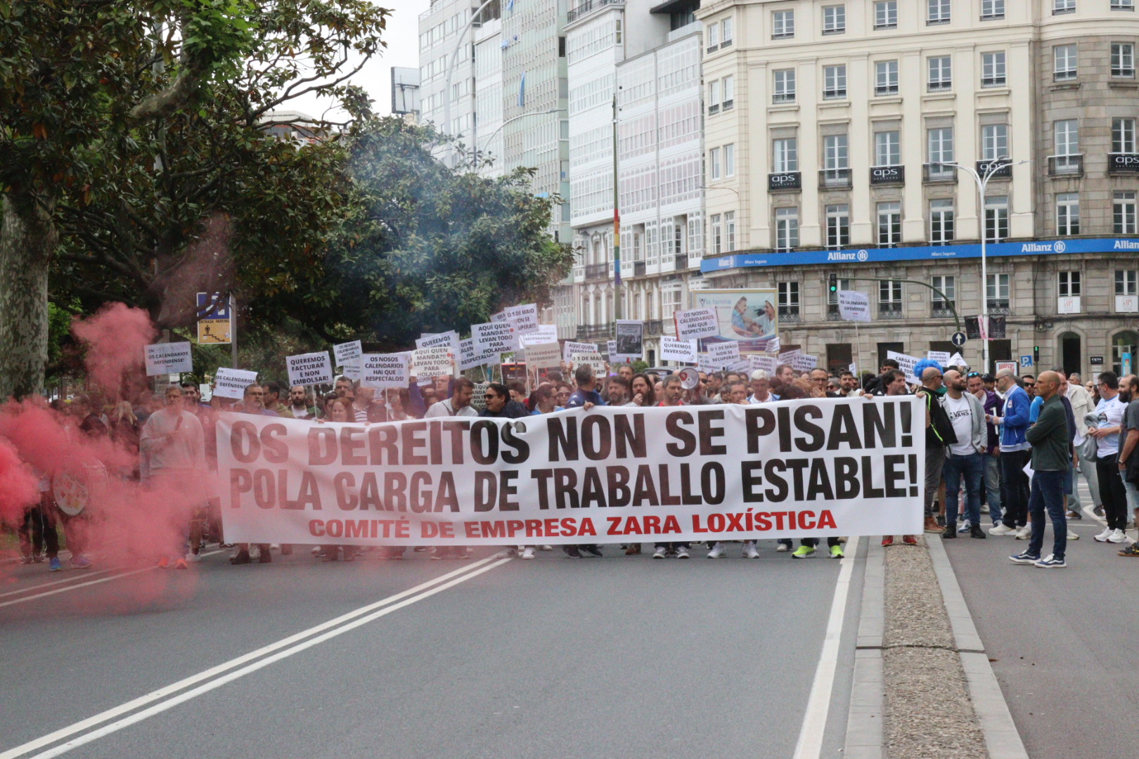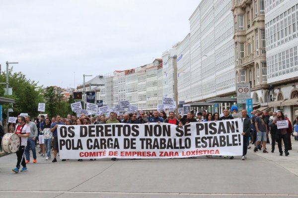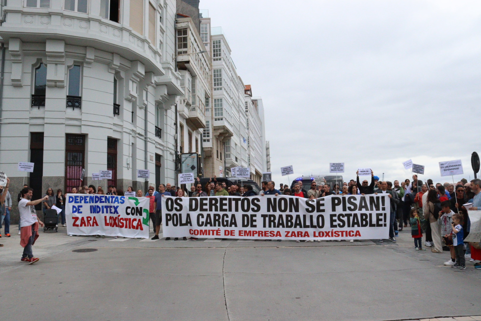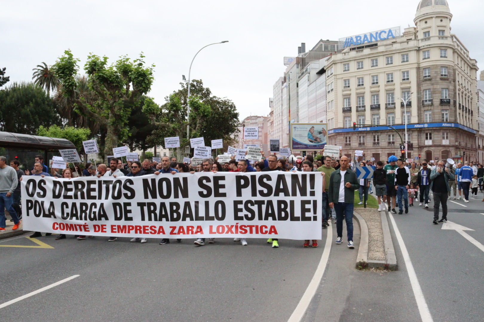 Máis de 1.000 traballadores e traballadoras de Zara Loxística manifestáronse este domingo polas rúas da Coruña en resposta á decisión unilateral da empresa de modificar os calendarios laborais e para reclamarlle a Inditex o compromisos de dotar o almacén de Sabón de carga de traballo estábel e efectuar os investimentos necesarios. A marcha saíu por volta do mediodía da Praza de Lugo e rematou na zona do paseo da dársena.